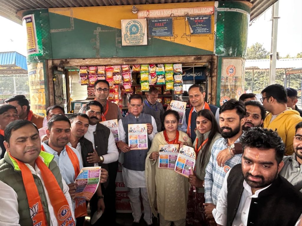 फरीदाबाद बल्लभगढ़। प्रधानमंत्री नरेंद्र मोदी के स्वदेशी अपनाओ और आत्मनिर्भर भारत अभियान को आगे बढ़ाने के उद्देश्य से हरियाणा के खाद्य एवं आपूर्ति राज्यमंत्री राजेश नागर रविवार को बल्लभगढ़ रेलवे स्टेशन पहुंचे। यहाँ उन्होंने भाजपा कार्यकर्ताओं के साथ यात्रियों से संवाद किया और उन्हें देश में निर्मित वस्तुओं को प्राथमिकता देने की अपील की।
