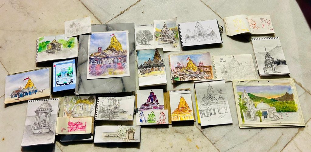 अंबाजी तीर्थ दर्शन सर्किट के हिस्से के तौर पर, अतुल्य वर्ष टीम ने श्री अंबाजी मंदिर ट्रस्ट के साथ मिलकर कई सांस्कृतिक और कलात्मक कार्यक्रम आयोजित किए। अंबाजी चर्च चौक पर मशहूर भवई लोक कलाकारों ने लोक कला पेश की, जिसे आने वालों और स्थानीय लोगों से बहुत अच्छा रिस्पॉन्स मिला। रविवार को, अहमदाबाद के लगभग 30 कलाकारों के एक ग्रुप ने तीर्थ दर्शन मार्ग पर मंदिरों और आध्यात्मिक जगहों को दिखाते हुए सुंदर पेंटिंग बनाईं। कलाकारों ने सर्किट के साथ सभी ज़रूरी विरासत स्थलों का भी दौरा किया। स्केच कलाकारों और भवई लोक कलाकारों की एक टीम श्री अंबाजी तीर्थ की समृद्ध प्राचीन और प्राकृतिक विरासत को दिखाने का काम कर रही है और कलात्मक कार्यक्रमों के ज़रिए लोक संस्कृति को दिखा रही है…..