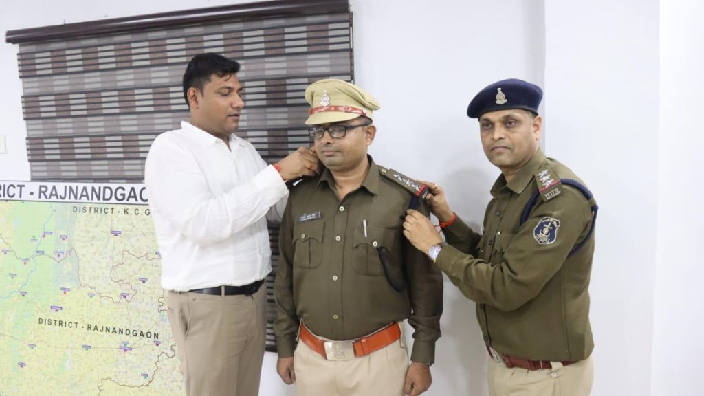 विभागीय पदोन्नति प्रक्रिया के तहत् पुलिस मुख्यालय छत्तीसगढ़ के आदेश दिनांक 11.10.2024 के माध्यम से राज्य में 09 उप निरीक्षकों को निरीक्षक के पद पर पदोन्नत हेतु आदेशित किया गया था जिसमें से जिला राजनांदगांव के तीन उप निरीक्षक हैं। उक्त आदेश के तहत् आज दिनांक 11.12.2024 को कार्यालय पुलिस अधीक्षक राजनांदगांव में पुलिस अधीक्षक श्री मोहित गर्ग द्वारा थाना लालबाग में पदस्थ उप निरीक्षक श्री योगेश कुमार पटेल, थाना डोंगरगढ़ में पदस्थ उप निरीक्षक श्री शंकर गिर गोस्वामी, थाना सोमनी में पदस्थ उप निरीक्षक श्री संतोष कुमार जायसवाल को स्टार लगाकर निरीक्षक के पद् पर पदोन्नत किया गया। पुलिस अधीक्षक द्वारा उनके उज्जवल भविष्य की कामना कर बधाई दी गई। इस अवसर पर रक्षित निरीक्षक श्री लोकेश कुमार कसेर, थाना डोंगरगढ़ प्रभारी निरीक्षक श्री जितेन्द्र वर्मा एवं पुलिस अधीक्षक कार्यालय के स्टाफ उपस्थित थे।
