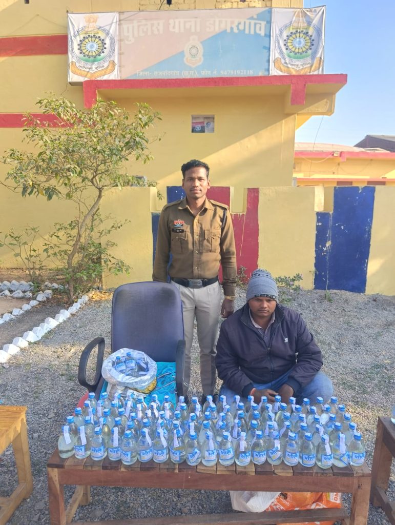 03 प्रकरणो में कुल 267 पौवा (लगभग साढे़ पांच पेटी) अवैध शराब व दुपहिया वाहन स्कुटी जुपिटर कुल जुमला 71,300/- रूपये एवं 48.600 बल्क लीटर अवैध देशी शराब जप्त किया गया।✳️ तीन अभियुक्तों को गिरफ्तार कर अभियुक्तों के विरुद्ध आबकारी अधिनियम की धारा 34(2) आबकारी के अंतर्गत प्रकरण पंजीबद्ध कर वैधानिक कार्रवाई की जा रही है।✳️ गिरफ्तार आरोपी का नाम (1) सारंग बरमाटे पिता श्री किर्तन बरमाटे, उम्र 22 साल साकिन वार्ड नं0 08 डोंगरगांव, थाना डोंगरगांव, जिला राजनांदगांव (छ0ग0) (2) हरिश निर्मलकर पिता कमल राम निर्मलकर उम्र 21 साल निवासी ग्राम सालिक झिटिया थाना डोंगरगांव जिला राजनांदगांव (3) जितेन्द्र यादव पिता स्व. श्रवण यादव उम्र 25 साल साकिन वार्ड नं. 03 कोकपुर थाना डोंगरगांव जिला राजनांदगांव (छ0ग0) विवरण – श्रीमान पुलिस अधीक्षक महोदय राजनांदगांव सुश्री अंकिता शर्मा, अति पुलिस अधीक्षक महोदय श्री राहुल देव शर्मा व श्रीमान पुलिस अनुविभागीय अधिकारी महोदय डोंगरगांव श्री दिलीप सिसोदिया के दिशा-निर्देश में थाना प्रभारी डोंगरगांव निरीक्षक आशीर्वाद रहटगावकर द्वारा अपने थाना क्षेत्र में अपने टीम के साथ लगातार गस्त पेट्रोंिलंग कर अवैध शराब बिक्री करने वालो पर नजर रख रही है। डोंगरगांव पुलिस द्वारा अवैध शराब के निर्माण, परिवहन एवं विक्रय पर कड़ी निगरानी रखी जा रही है इसी तारतम्य आज 18 दिसम्बर को तीन अलग स्थान ग्राम कोकपुर, ग्राम आरी और डोंगरगांव मे दबिश देकर अवैध शराब विक्रेताओ से कुल 267 पाव अवैध मदिरा जप्त कर गिरफ्तारी की कार्यवाही की गई तथा आगे भी ऐसी कार्यवाही निरंतर जारी रहेगी।कार्यवाही मे SI वीरेंद्र मनहर, आरक्षक जितेश साहू, प्रेम कुमार, दीपक भोई का उल्लेखनीय योगदान रहा