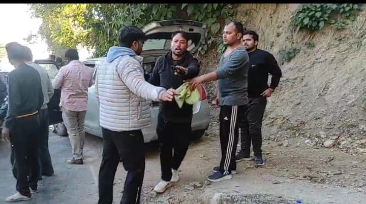 नैनीताल। सरोवर नगरी नैनीताल से दूर कालाढूंगी नैनीताल बजुन मार्ग के समीप दो चौपहिया वाहन के टक्कर हो जाने से आधा दर्जन लोग घायल हो गये। इस मार्ग से सामाजिक कार्यकर्ता पवन जाटव व प्रवेश कही को जा रहे थे। उन्होंने जैसे ही देखा कि सड़क पर एक्सीडेंट हो गया तो उन्होंने आनन फानन में पुलिस को सूचना दी। पुलिस के आने तक पवन ने अपने साथी प्रवेश के साथ मिलकर घायलों की कुशलता पूछी। जिसमें एक महिला अधिक रूप से घायल हो गई थी जो चल नही पा रही थी तो पवन जाटव ने जैसे तैसे एक वाहन को रोका और उसमें घायल को राजकीय बी ड़ी पांडे अस्पताल लाया गया जहां उपचार करने के बाद हायर सेंटर रेफर कर दिया। तथा एक युवक को हल्की चोट आई बाकी चार लोग उपचार के लिए नैनीताल नही आये उनको भी हल्की पुलकि चोट आई होगी।