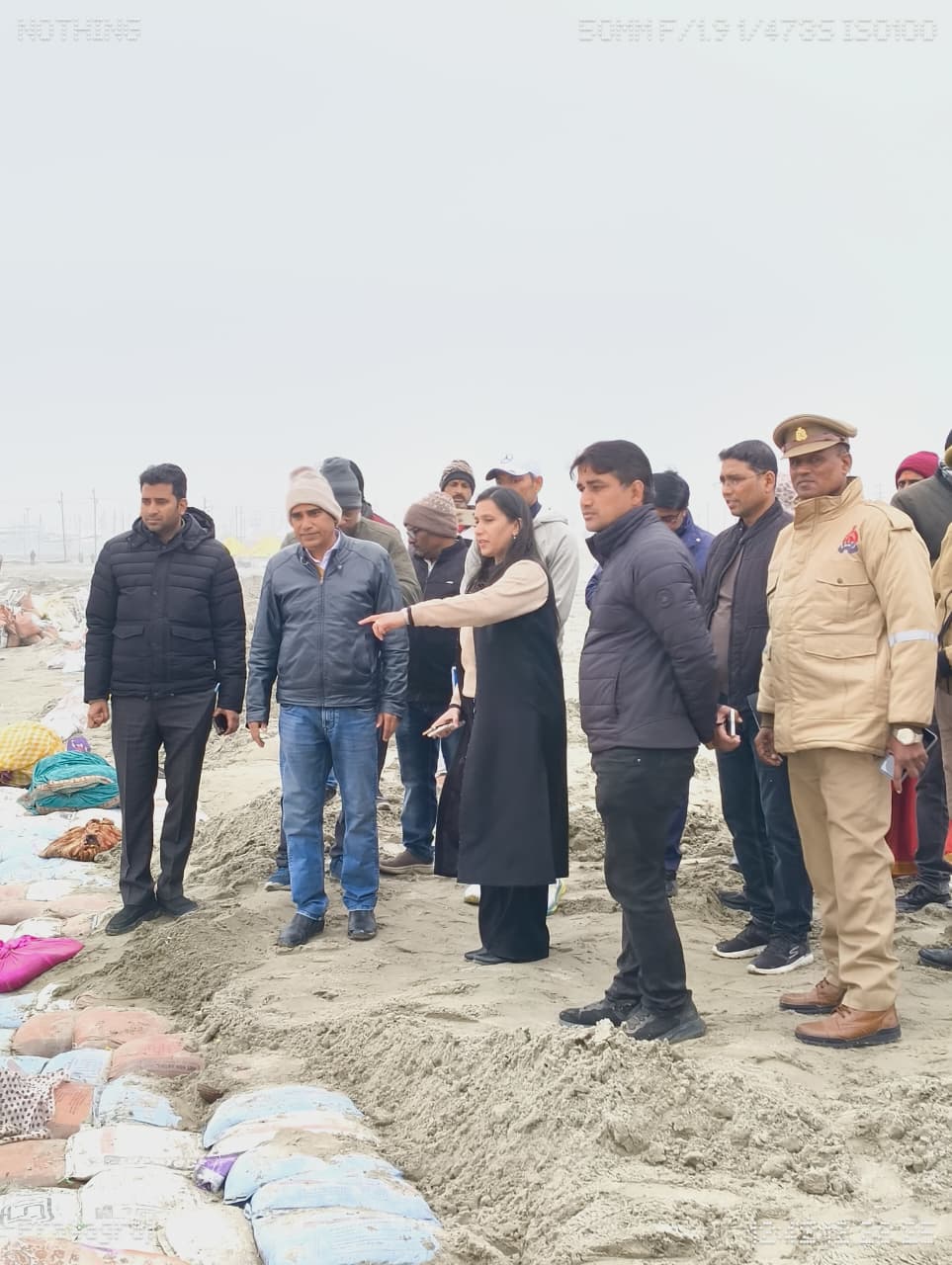 मंडलायुक्त श्रीमती सौम्या अग्रवाल रविवार को माघ मेला 2026 की सन्निकटता के दृष्टिगत मेला क्षेत्र के विभिन्न सेक्टरों का नगर आयुक्त श्री सीलम साईं तेजा, उप मेलाधिकारी‚ माघ मेला तथा संंबंधित विभागों के अधीक्षण अभियन्ता व अधिशासी अभियन्ता के साथ भ्रमण किया गया। मंडलायुक्त ने भ्रमण के दौरान मेला क्षेत्र में तैयार कराये जा रहे विभिन्न घाटों को देखा गया और आवश्यक मूलभूत सुविधाएं⁄व्यवस्थाओं के संंबंध में जानकारी लेते हुए समस्त घाटों एवं आवश्यक मूलभूत व्यवस्थाओं को मेला प्रारम्भ होने के पूर्व समय से पूर्ण कराने के निर्देश दिए । मेला क्षेत्र के समस्त सेक्टर मजिस्टे्ट एवं विभागीय अभियन्ताओं को निर्देशित किया गया कि अपने–अपने क्षेत्रों में निरन्तर भ्रमण करते हुए कार्याें की जानकारी लेते रहें।