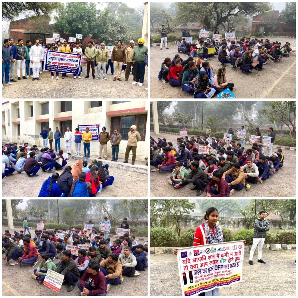 पलवल आयुक्त डॉ हरीश वशिष्ठ आईएएस के आदेशानुसार व प्रादेशिक परिवहन अधिकरण डीटीओ जितेंद्र के निर्देशअनुसार राज्य सड़क सुरक्षा परिषद् कॉउन्सिल हरियाणा सरकार के सदस्य सरदार देवेंदर सिंह के मार्ग दर्शन में अप्रितम सिंह HCS हथीन एसडीएम एवम् डीएसपी हथीन मोहिन्दर वर्मा HPS के नेतृत्व में रोड सेफ़्टी ओमनी फ़ाउंडेशन ट्रस्ट ने हथीन औद्योगिक प्रशिक्षण संस्थान के बच्चों को सड़क सुरक्षा ,नशा मुक्ति अभियान व साइबर अपराध के बारे में जागरूक किया गया रोड सेफ्टी ओमनी फाउंडेशन ट्रस्ट से बिजेंद्र सैनी ने बताया कि नाबालिग बच्चों को वाहन नहीं चलाना चाहिए और जो बच्चे 16 साल के हैं वो भी एसडीएम ऑफिस हथीन से बिना गियर वाले दुपहिया वाहन का ड्राइविंग लाइसेंस बनवा सकते हैं और 18 साल के बाद गियर वाले वाहन का ड्राइविंग लाइसेंस भी बनवाए वर्ना कोई भी दुर्घटना हो जाने पर आपका भारी नुक़सान हो सकता है जुर्माना भरते भरते घर मकान आदि भी बिक सकता है अनिल भाटिया रोड सेफ्टी ओमनी फाउंडेशन ट्रस्ट ने बच्चों को नशें से दूर रखने के बारे में जानकारी दी अधिकतर इस स्कूल व कॉलेज समय में कई बच्चे नशें की बुरी लत में पड जाते हैं यहाँ आइटीआई के बच्चों को कोहरे में बचाव के लिए रिफ़्लैक्टर टेप भी अपने घर के वाहन पर लगाने के लिए दी गई अगर कही भी साइबर अपराध होता है तो तुरंत DIAL 1930 पर डायल करे साइबर अपराध को होने से बचाये
