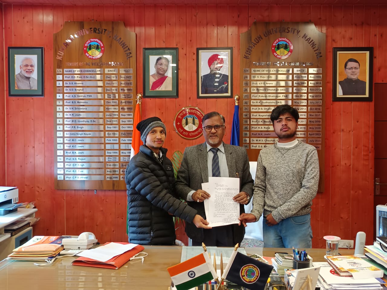 नैनीताल। सरोवर नगरी नैनीताल डीएसबी कॉलेज के उत्तराखण्ड राज्य आंदोलन कारी के आश्रित छात्र कुमाऊँ विश्वविद्यालय के हर्षित जोशी, शशांक भंडारी, प्रियांसु नेगी आदि कुलपति प्रोफेसर दिवान सिंह रावत से मिले और ज्ञापन सौंपा। जिसमें उन्होंने कुलपति को बताया उत्तराखण्ड सरकार द्वारा एक शाश्नादेश आया हुआ है। जिसमें चिन्हित उत्तराखण्ड राज्य आंदोलन कारी के दो बच्चों को निशुल्क शिक्षा दी जायेगी। इसी क्रम में उत्तराखंड राज्य आंदोलन कारियों के पुत्र कुलपति से मिले ओर उन्हें ज्ञापन देकर मांग की जिस प्रकार से गढ़वाल मंडल के विधालयों में निशुल्क राज्य आंदोलन कारियों के दो बच्चों को निशुल्क शिक्ष दी जाये उसी तरह डीएसबी कॉलेज में व अन्य शिक्षण संस्थाओं में भी निशुल्क शिक्षा दी जाये। इसी क्रम में छात्र हर्षित जोशी, शशांक भंडारी, व प्रियांसु नेगी ने बताया गढ़वाल मंडल के विद्यालय में छात्रों की फीस जो जमा हो गई थी। वह तक वापस छात्रों को मिल चुकी है। कुलपति ने उत्तराखंड राज्य आंदोलन कारियों के पुत्रों को आश्वस्त किया है वह इस सम्बंध में अपने स्तर से शीघ्र कार्यवाही करेगें। अगर इस तरह का कोई प्रावधान होगा तो यहाँ विश्वविद्यालय में लागू किया जायेगा। इस मौके पर छात्रों ने कुलपति का आभार जताया।
