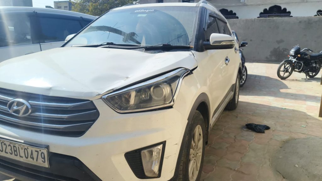 क्रेटा कार का ड्राइवर एक्सीडेंट करके फरार हो गया..