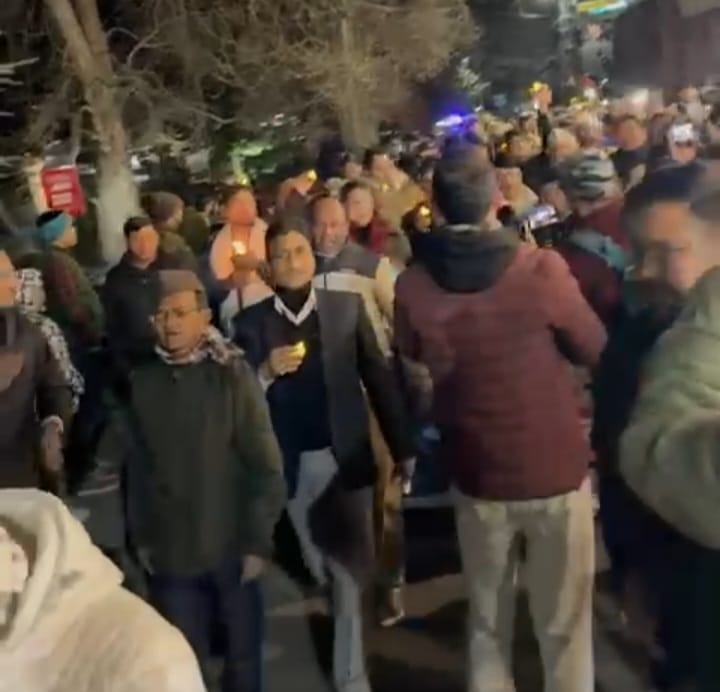 नैनीताल। सरोवर नगरी नैनीताल में कांग्रेसी नेताओं व कार्यकर्ताओं ने उत्तराखंड की बेटी अंकिता भंडारी को पूर्ण न्याय दिलवाने व इस प्रकरण की निष्पक्ष जांच उच्चतम न्यायालय कि निगरानी में करवाने की मांग को लेकर नेता प्रतिपक्ष यशपाल आर्य के नेतृत्व में मल्लीताल स्थित पंत पार्क से तल्लीताल गांधी चौक” तक “कैंडल मार्च” निकाला गया। जिसमें सैकड़ों की संख्या में लोग मौजूद रहे। कांग्रेसी कार्यकर्ता नारेबाजी करते हुए अंकिता हम शर्मिंदा है तेरे खातिर जिंदा है, वह वीआईपी कौन है मुख्यमंत्री मौन है तमाम नारेबाजी की जा रही थी। इस दौरान पुलिस भी मुस्तेद दिखाई दी।