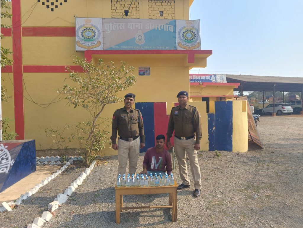 थाना डोंगरगांव दिनांक – 08.01.2026 ✳️ 02 प्रकरणो में कुल 104 पौवा (लगभग दो पेटी) अवैध शराब 18.720 बल्क लीटर, कुल जुमला किमती 8,320/- रूपये की अवैध देशी शराब जप्त किया गया।✳️ दो अभियुक्तों के विरूद्ध धारा 34(2) आबकारी एक्ट की कार्यवाही की गई है।✳️ गिरफ्तार आरोपी का नाम (1) नुतन कुमार सिन्हा पिता स्व0 चैत राम सिन्हा उम्र 26 साल, साकिन ग्राम साल्हे, थाना डोगरगांव, जिला राजनांदगांव (छ0ग0) (2)राजीव गिरी गोस्वामी उर्फ राजू उर्फ धीरेन्द्र गिरी गोस्वामी पिता मंगलगिरी गोस्वामी, उम्र 34 साल, साकिन वार्ड नं0 18 ग्राम राजाखुज्जी, थाना डोगरगांव, जिला राजनांदगांवविवरण – अवैध शराब बिक्री पर सख्त पुलिस अधीक्षक महोदय राजनांदगांव सुश्री अंकिता शर्मा, के द्वारा अवैध रूप से शराब बिक्री/परिवाहन पर कडी कार्यवाही करने का निर्देश दिया गया है। श्रीमान पुलिस अनुविभागीय अधिकारी डोंगरगांव श्री दिलीप सिसोदिया के मार्गदर्शन में थाना डोंगरगांव क्षेत्र में अवैध शराब के विरूद्ध लगातार कार्यवाही जारी है। इसी क्रम मे दिनांक 07.01.26 को मुखबिर से सूचना प्राप्त हुई कि, ग्राम राजाखुज्जी मे अवैध रूप से देशी मदिरा रखकर बिक्री हेतु रखा है। सूचना पर तत्काल कार्यवाही करते हुए थाना डोंगरगांव पुलिस द्वारा निरीक्षक आशीर्वाद राहटगांवकर के नेतृत्व में टीम गठित कर बताए गए स्थान पर घेराबंदी कर एक आरोपी को पकडा गया। आरोपी के कब्जे से कुल 69 पाव देशी मदिरा 12.420 बल्क लीटर किमती 5,520/- रूपये जप्त की गई। आरोपी का नाम पूछने पर स्वयं का नाम राजीव गिरी गोस्वामी उर्फ राजू उर्फ धीरेन्द्र गिरी गोस्वामी पिता मंगलगिरी गोस्वामी, उम्र 34 साल, साकिन वार्ड नं0 18 ग्राम राजाखुज्जी, बताया बरामद मदिरा को मौके पर पंचनामा तैयार कर विधिवत जप्त किया गया। आरोपी लंबे समय से क्षेत्र मे अवैध शराब का कोचिया काम कर रहा था जिससे क्षेत्रवासी एवं महिलाऐ बहुत परेशान थी इस कार्यवाही से खुश होकर महिलाओं ने थाना डोंगरगांव का धन्यवाद किया है। इसीक्रम में मुखबिर से अन्य सूचना प्राप्त हुई कि, ग्राम साल्हे मार्ग मे अवैध रूप से देशी मदिरा रखकर बिक्री हेतु रखा है। सूचना पर तत्काल कार्यवाही करते हुए थाना डोंगरगांव पुलिस द्वारा निरीक्षक आशीर्वाद राहटगांवकर के नेतृत्व में टीम गठित कर बताए गए स्थान पर घेराबंदी कर एक आरोपी को पकडा गया। आरोपी के कब्जे से कुल 35 पाव देशी मदिरा 06.300 बल्क लीटर किमती 2800/- रूपये जप्त की गई। आरोपी का नाम पूछने पर स्वयं का नाम नुतन कुमार सिन्हा पिता स्व0 चैत राम सिन्हा उम्र 26 साल साकिन ग्राम साल्हे, बताया, बरामद मदिरा को मौके पर पंचनामा तैयार कर विधिवत जप्त किया गया। ज्ञात हो की पिछले पखवाडे में थाना डोंगरगांव द्वारा अवैध शराब बिक्री करने वालो पर कार्यवाही कर लगभग साढे़ पांच पेट