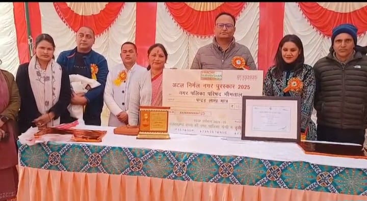 नैनीताल। सरोवर नगरी नैनीताल से महज 22 किलोमीटर दूर भीमताल नगर पालिका को अटल निर्मल नगर पुरस्कार के तहत 15 लाख रुपये से सम्मानित किया गया। साथ ही उत्तराखंड राज्य की नगर पालिका परिषद में तीसरा स्थान भीमताल नगर पालिका को मिला।