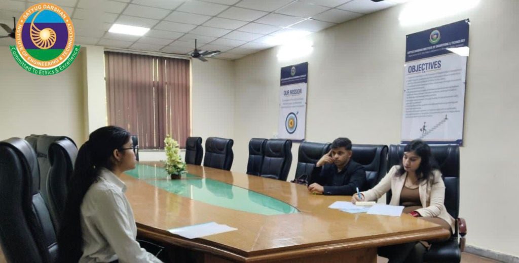 फरीदाबाद सत्युग दर्शन इंस्टीट्यूट ऑफ इंजीनियरिंग एंड टेक्नोलॉजी (SDIET) में रियल्टी स्मार्ट्ज प्रा. लि., गुरुग्राम द्वारा पोर्टफोलियो मैनेजर – रियल एस्टेट पद हेतु सफल कैंपस प्लेसमेंट ड्राइव का आयोजन किया गया। इस अवसर पर संस्थान के बी बी ए, फाइनल ईयर के विद्यार्थियों ने उत्साहपूर्वक भाग लेते हुए रियल एस्टेट क्षेत्र में अपने करियर की दिशा में महत्वपूर्ण कदम बढ़ाया।