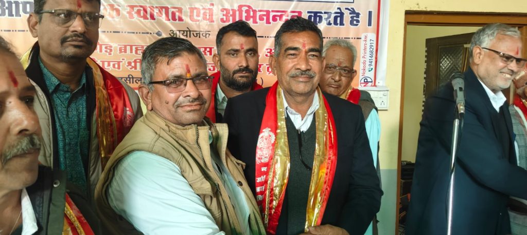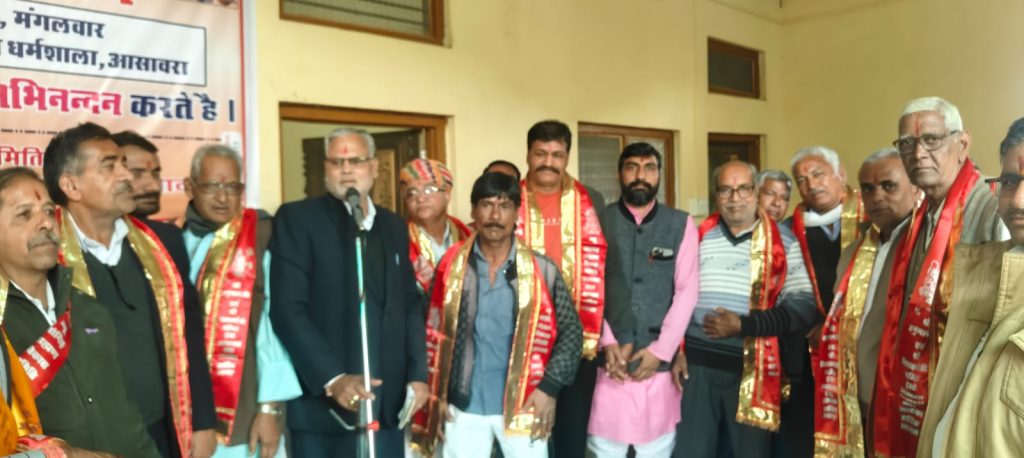 असावरा: श्री विश्वकर्मा जांगिड़ ब्राह्मण धर्मशाला के परिसर में ‘न्यू जांगिड़ ब्राह्मण विकास समिति’ तथा श्री हनुमान जी एवं श्री विश्वकर्मा ट्रस्ट मंदिर, इष्ट असावरा की नई कार्यकारिणी के पदाधिकारियों को श्रीमान परसराम सुथार (नारायणपुरा, समाज सेवी) द्वारा हमारे आराध्य देव भगवान श्री विश्वकर्मा को साक्षी मानकर शपथ दिलाई गई।