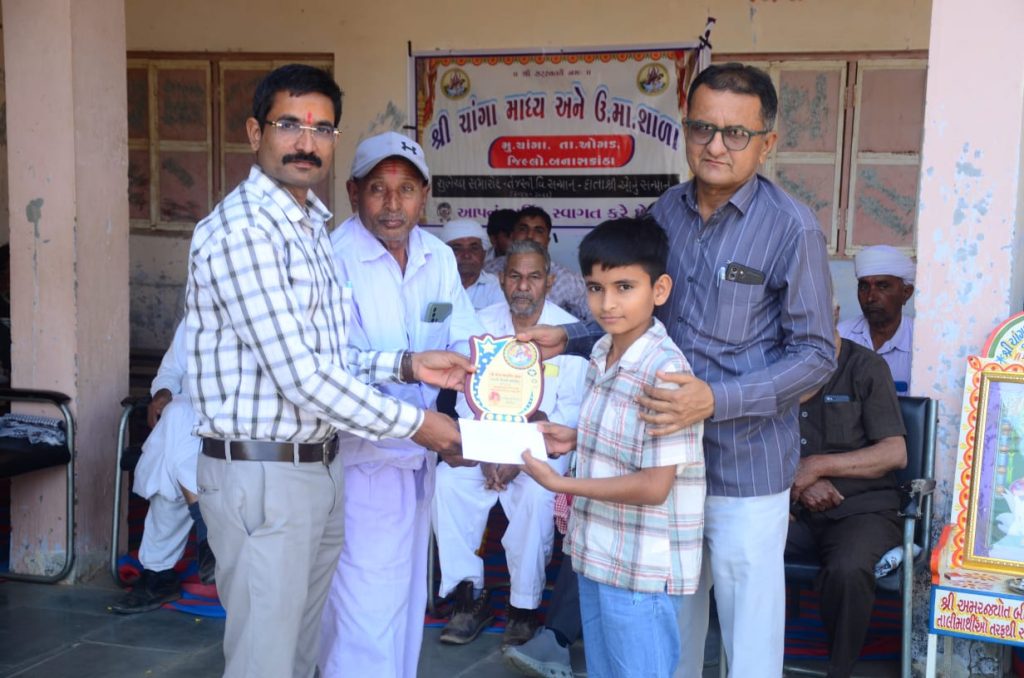 ओगड तालुका के चांगा गांव में श्री हिंगलाज एजुकेशन ट्रस्ट राणाकपुर द्वारा चलाए जा रहे श्री चांगा सेकेंडरी और हायर सेकेंडरी स्कूल में 10वीं और 12वीं क्लास के स्टूडेंट्स के लिए फेयरवेल सेरेमनी और चमकते सितारों और नए डोनर्स को सम्मानित करने के लिए एक प्रोग्राम हुआ……