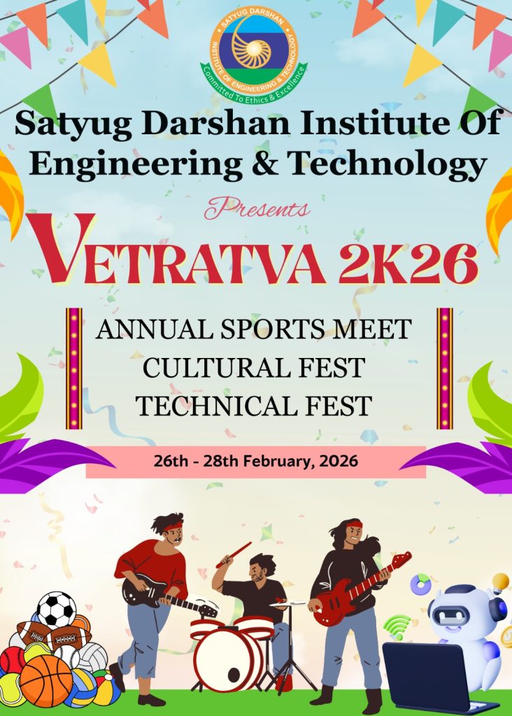 फरीदाबाद सतयुग दर्शन इंस्टीट्यूट ऑफ इंजीनियरिंग एंड टेक्नोलॉजी (एसडीआईईटी) अपने बहुप्रतीक्षित वार्षिक महोत्सव “वेत्रत्व 2K26” का आयोजन 26 से 28 फरवरी 2026 तक अपने संस्थान परिसर में करने जा रहा है।