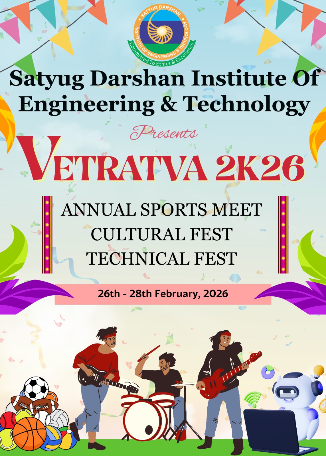 संस्थान सभी विद्यार्थियों एवं हितधारकों को इस भव्य आयोजन का हिस्सा बनने हेतु सादर आमंत्रित करता है और वेत्रत्व 2K26 को एक यादगार उत्सव बनाने की अपील करता है।