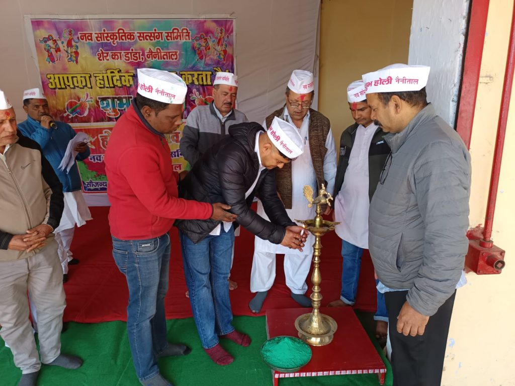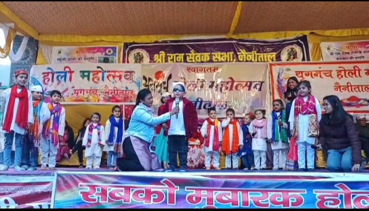 नैनीताल। सरोवर नगरी नैनीताल व उसके आसपास इन दिनों तमाम स्थानों में होली की धूम मची हुई है। यहाँ नव सांस्कृतिक सत्संग समिति शेर का डांडा रामलीला मैदान में हर वर्ष की भांति भी इस वर्ष स्कूली बच्चों की होली प्रतियोगिता आयोजित की गई साथ ही महिलाओं की भी होली प्रतियोगिता आयोजित की गई। होली प्रतियोगिता का शुभारंभ नगर पालिका के सभासद जितेन्द्र कुमार पांडे, जीनू, एवं रमेश प्रसाद समेत रामलीला के बरिष्ठ पदाधिकारी कुँवर सिंह रावत व समिती सदस्यों ने सयुंक्त रूप से दीप प्रज्वलित कर उद्घाटन किया। इस अवसर पर युगमंच के बच्चों द्वारा होली रे रसिया आज बिरज में होली रे रसिया वही राधा चिल्ड्रन अकादमी स्कूल के बच्चों ने मनमोहन नृत्य प्रस्तुत कर वाहवाही बटोरी ,सैनिक स्कूल के U छात्रों ने ढोलक की थाप पर केले बाँधी चिर ओ रघुनंदन राजा गणपति बाधि चिर ओ रघुनंदन राजा सी आर एस टी इंटर कॉलेज के छात्रों द्वारा हारमोनियम की धुन में कोन लला घर आये कुँवर कन्हैया इसके अलावा महिलाओं की टीम ने भी होली मंच पर शमा बाँधी।जिस पर जय हनुमंते संस्था महिलाओं द्वारा काहे की तोरी बनी मुरलियाँ, शेर का डांडा महिलाओं ने भवानी माता का ध्यान कर मंदिर के पट खोले रे भवानी अंगना में डाले रे गुलाल, रिद्धि सिद्धि ग्रुप द्वारा वो भी सिर पर हरि में भी हरि, वैष्णवी ग्रुप महिलाओं द्वारा होली गायन कर जमकर ठुमके लगाए भवानी में चढ़त गुलाल हा थाल सजाके इसके बाद प्रेरणा महिला समिति जो हल्द्वानी उत्कृष्ट सामुहिक गायन में पहला स्थान प्राप्त किया उनकी टीम ने होली गायन में चार चांद लगाकर दर्शकों को बैठने के साथ साथ नाचने के लिए मजबूर कर दिया। कार्यक्रम का संचालन उमेश सनवाल, शिक्षिका दीपा पांडे ने सयुंक्त रूप से किया। इस अवसर पर समिती के तमाम पदाधिकारी मौजूद रहे। सभी होल्यारों को समिती द्वारा स्मृति चिन्ह देकर सम्मानित किया गया।
