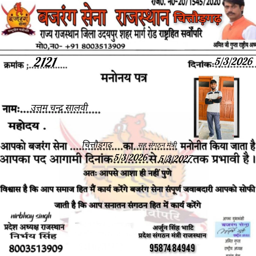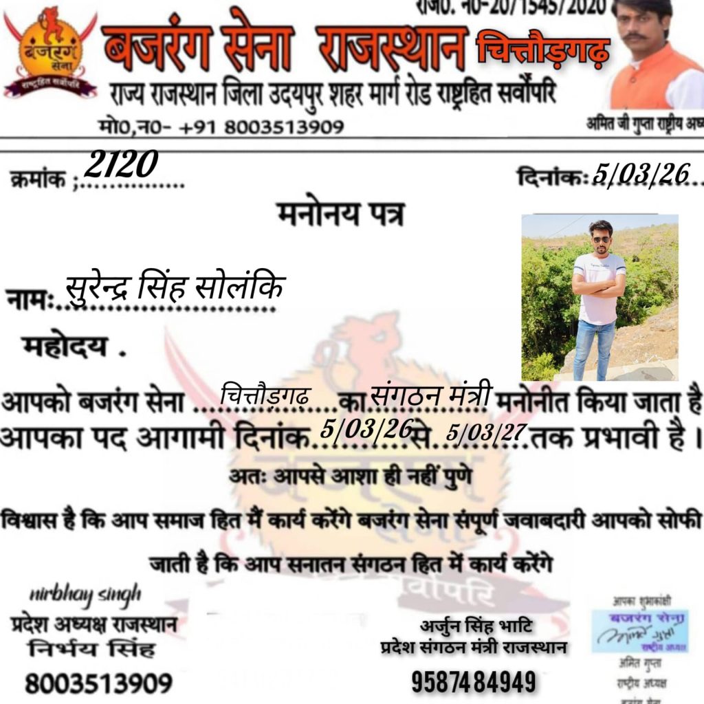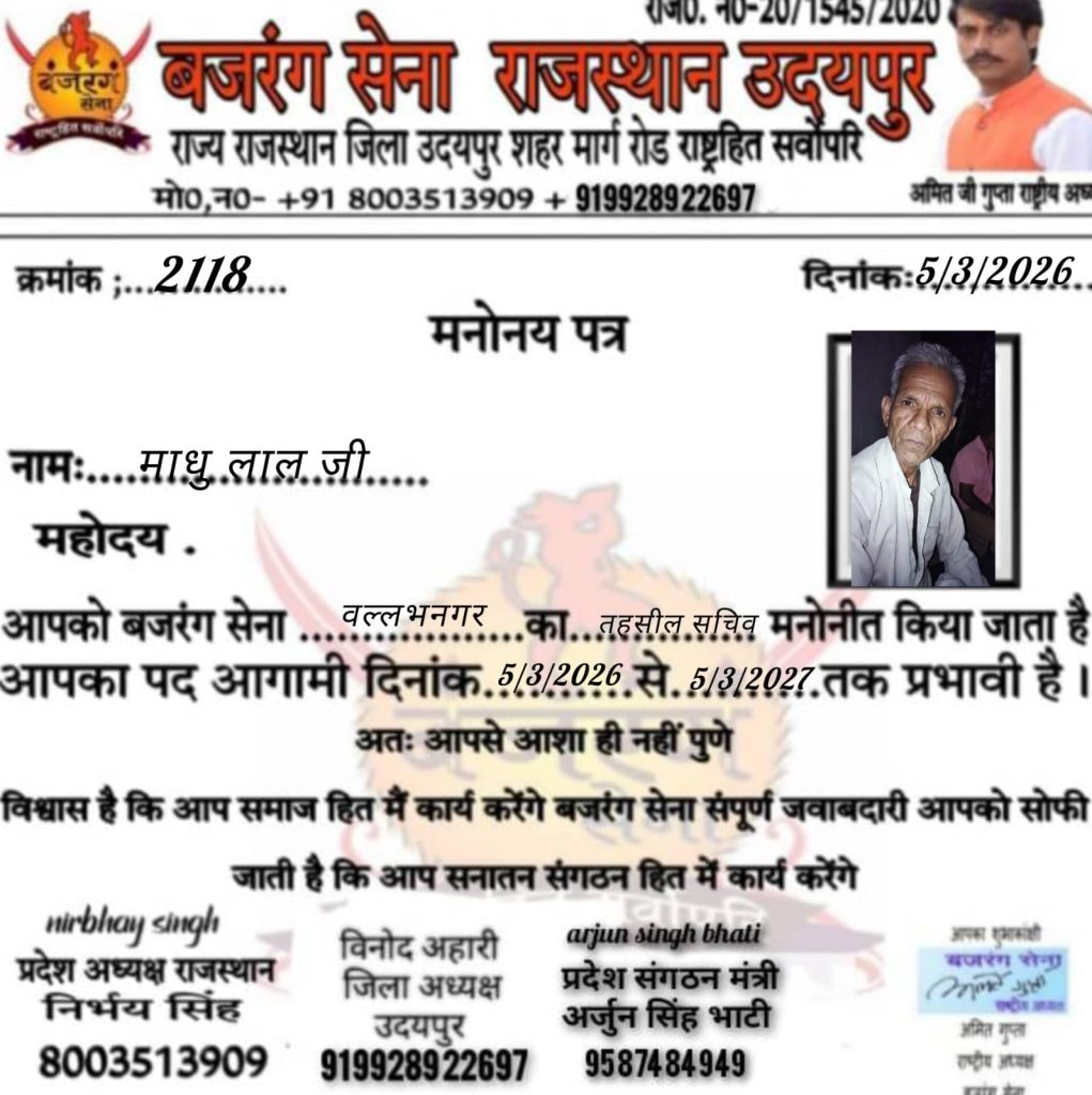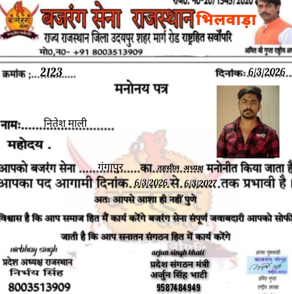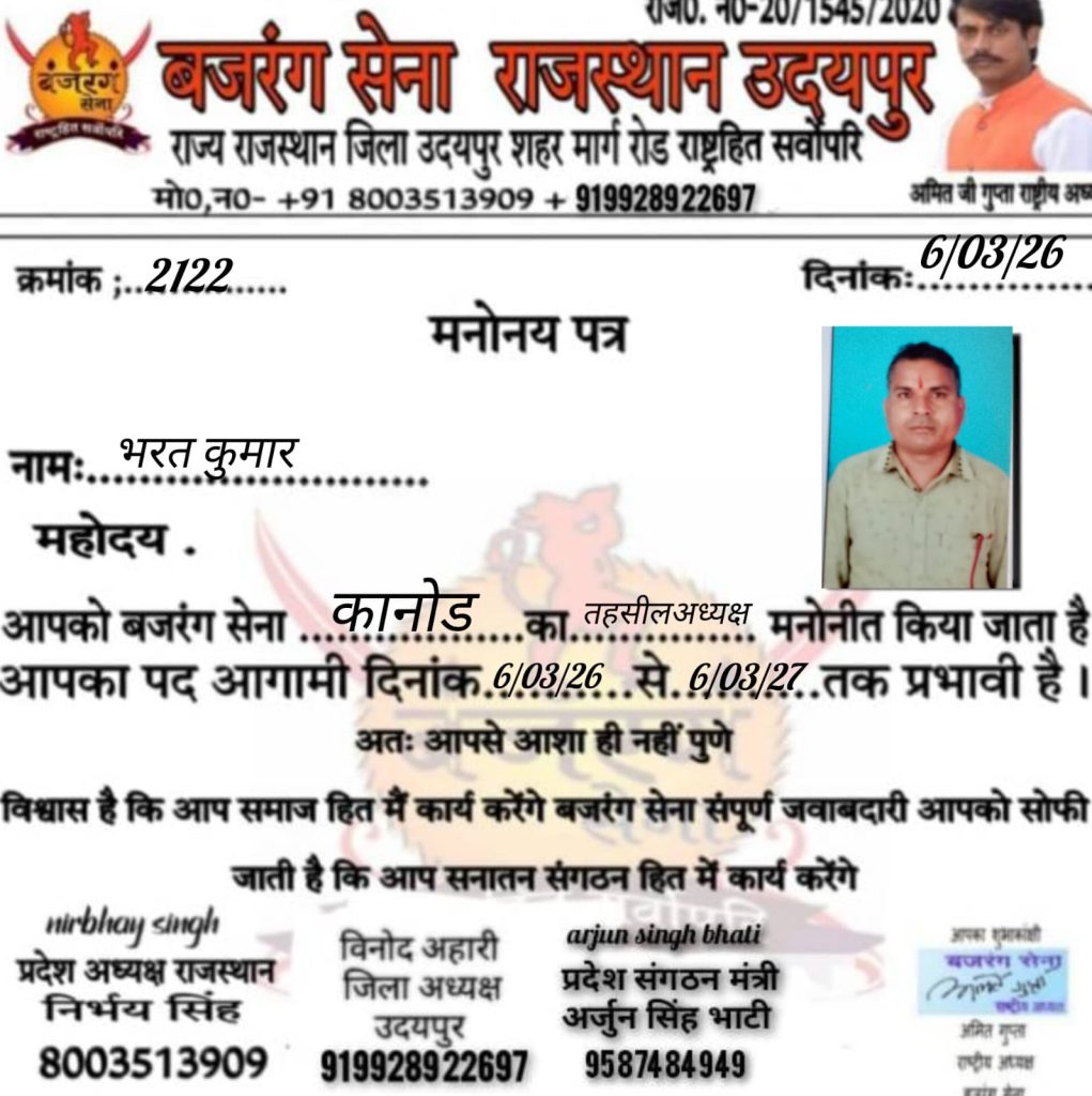 भदेसर तहसील अध्यक्ष लक्ष्मण सिंह को मनोनीत किया।
