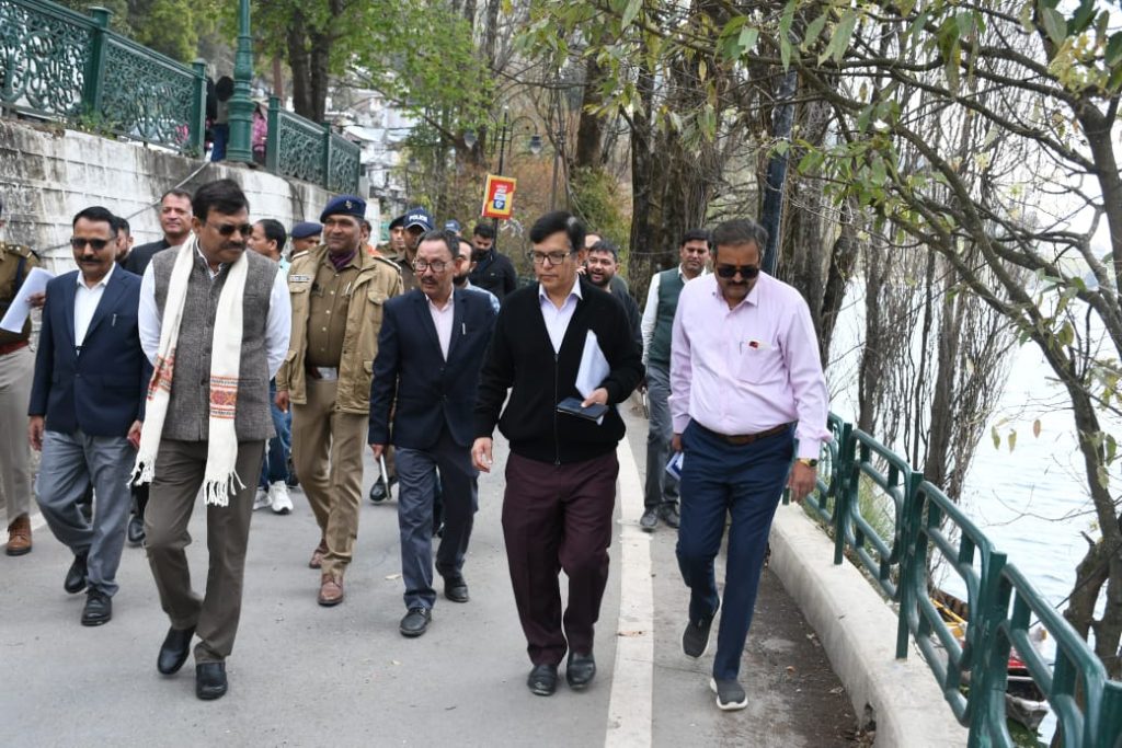 भ्रमण के दौरान मुख्य सचिव ने वर्ष 2018 में नैनीताल स्थित लोअर माल रोड में हुई क्षति के मरम्मत तथा झील की तरफ से हो रहे भू-धसाव की रोकथाम हेतु 3 करोड़ 48 लाख रुपए की लागत से सड़क के भू- भाग में कराए जा रहे सुरक्षात्मक एवं सुधारीकरण कार्यों का भी स्थलीय निरीक्षण भी किया गया तथा अधिकारियों से जानकारी ली। इस दौरान लोनिवि के मुख्य अभियंता ने अवगत कराया टीएचडीसी के द्वारा तैयार डीपीआर व डिजाईन एवं उनकी देखरेख में ही सुरक्षात्मक व सड़क सुदृढ़ीकरण का कार्य किया जा रहा है। मुख्य सचिव ने विभाग को पूर्ण गुणवत्ता से निर्धारित समय पर कार्य पूर्ण करने के निर्देश दिए। साथ ही उन्होंने सिंचाई विभाग को भी निर्देश दिए कि मालरोड में उनकी ओर से जो भी कार्य किए जाने हैं वह भी कार्य शीघ्रता से कराएं।