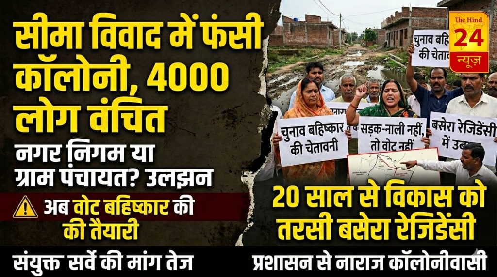 आगरा में विकास से वंचित हजारों लोग अब बड़ा कदम उठाने को मजबूर हो गए हैं। नगर निगम और ग्राम पंचायत की सीमा विवाद में फंसी कई कॉलोनियों के लोगों ने चुनाव बहिष्कार तक की चेतावनी दे दी है।