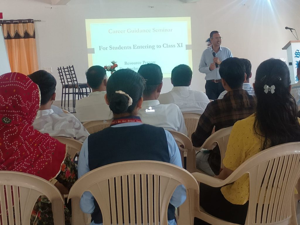 करियर गाइडेंस सेमिनार की बहुचर्चित विशेषज्ञ विभिन्न विषयों के ज्ञाता, प्रखर वक्ता और परामर्शदाता डॉ अंशुमान शर्मा ने विद्यार्थियों का मार्गदर्शन करते हुए न केवल उत्तरोत्तर कक्षाओं में उपयुक्त विषय चयन के लिए प्रेरित किया ,वरन उनका आने वाली बोर्ड परीक्षाओं की तैयारी के लिए भी उचित मार्गदर्शन किया । साथ ही उन्होंने विद्यार्थियों को समय के साथ – साथ विभिन्न संकायों में मिलने वाले नए अवसरों के बारे में जानकारी रखने और अपनी क्षमताओं को पहचान कर आगे बढ़ने की सलाह दी। उन्होंने विद्यार्थियों को बताया कि अपने साथियों के आकांक्षाओं के साथ जाने के बजाय अपनी दक्षता को पहचानते हुए अपना विषय निर्धारित करे और अपने लक्ष्य की कर्तव्यनिष्ठा के साथ प्राप्ति करें।