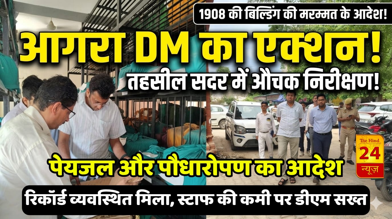 आगरा में आज प्रशासनिक सक्रियता की बड़ी तस्वीर सामने आई। अरविन्द मल्लप्पा बंगारी ने तहसील सदर का औचक निरीक्षण कर व्यवस्थाओं की हकीकत जानी। 1908 में बने प्राचीन तहसील भवन की स्थिति देखकर जिलाधिकारी ने तुरंत मरम्मत के निर्देश दिए और गर्मी को देखते हुए परिसर में छायादार पौधे व पेयजल की व्यवस्था सुनिश्चित करने को कहा। नई बिल्डिंग के राजस्व अभिलेखागार में रिकॉर्ड सुव्यवस्थित मिलने पर डीएम ने कर्मचारियों की सराहना की। वहीं स्टाफ की स्थिति की समीक्षा में सामने आया कि 48 स्वीकृत पदों में से 9 पद अभी भी रिक्त हैं।