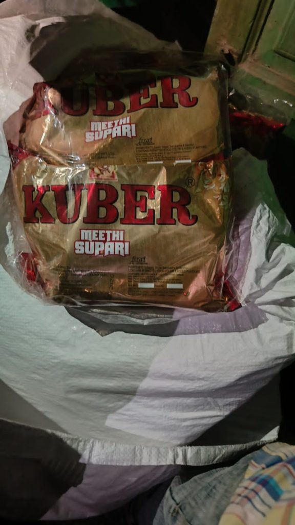 इस सूचना के सम्बंध में मुख्यमंत्री उडन दस्ता फरीदाबाद द्वारा श्री पुनीत शर्मा खाद्य सुरक्षा अधिकारी फरीदाबाद व स्थानीय पुलिय के साथ दुकान न. 236 नई सब्जी मंडी डबुआ फरीदाबाद का औचक निरीक्षण किया गया। निरीक्षण पर दुकान मालिक कुलदीप पुत्र श्री कृष्ण हाजिर मिला। गोदाम चैक करने पर भारी मात्रा में गोल्ड मोहर पान मसाला के 13720 पाउच व दिलबाग पान मसाला का 19650 पैकेट मिले। खाद्य सुरक्षा अधिकारी फरीदाबाद श्री पुनीत शर्मा द्वारा दिलबाग पान मसाला व गोल्ड मोहर पान मसाला के सैंपल लिये गये जिन्हे परीक्षण हेतु प्रयोगशाला भेजा जाएगा व नियमानुसार कार्यवाही अमल में लाई जायेगी। इस सम्बंध GST/टेक्सेशन विभाग द्वारा भी अलग से कार्यवाही की गई है।