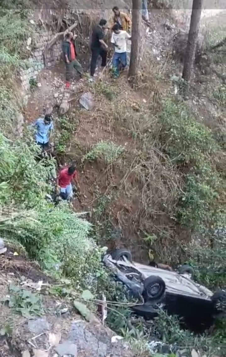 आमने-सामने की जोरदार टक्कर में एक कार लगभग 25 मीटर गहरी खाई में जा गिरी, जिससे मौके पर अफरा-तफरी मच गई।