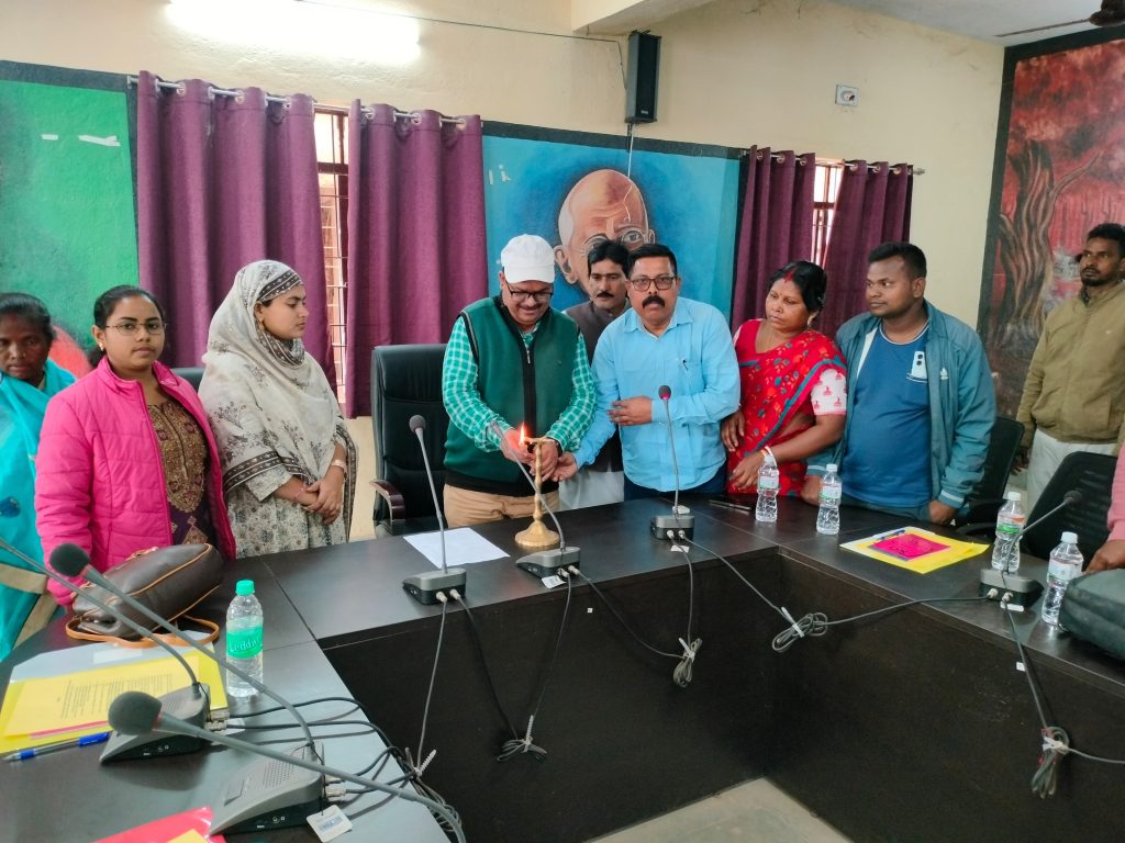 साहिबगंज जिला के उधवा प्रखंड सभागार कक्ष में गुरुवार को मनरेगा के तहत तीन दिवसीय मनरेगा प्रशिक्षण कार्यशाला का आयोजन किया गया। शुभारंभ बीडीओ सह सीओ जयंत कुमार तिवारी,प्रभारी जीपीएस जनकदेव यादव,मुखिया सह प्रशिक्षक नफीसा खातून,मुखिया प्रियंका कुमारी,जियाउल हक उर्फ शास्त्री ने संयुक्त रूप से दीप प्रज्वलित कर किया। मनरेगा कार्यशाला के माध्यम से प्रशिक्षक द्वारा मुखिया तथा वीएलई को प्रशिक्षण दिया गया। इस दौरान बीडीओ सह सीओ जयंत तिवारी ने कहा कि मुखिया तथा वीएलई प्रशिक्षण प्राप्त कर ईमानदारी पूर्वक अपने पंचायत में कार्य करें। उन्होंने कहा कि फाइलेरिया उन्मूलन कार्यक्रम से संबंधित वीएलई को जानकारी दी। अपने-अपने गांव में फाइलेरिया उन्मूलन की दवा खाने को लेकर लोगों को जागरूक करें। वहीं मुखिया सह प्रशिक्षक नफीसा खातून ने कहा कि आने वाले समय में मनरेगा संबंधित सभी कार्य अपने -अपने पंचायत सचिवालय से होना है। साथ ही उन्होंने बताया कि कुशल,अर्द्धकुशल व कुशल श्रमिकों का पंजीकरण,जॉब कार्ड का नवीनीकरण,नया जॉब कार्ड,मनरेगा कार्यो का नरेगासॉफ्ट में प्रविष्ट,कार्यो का स्वीकृति संबंधित समस्या का निराकरण आदि संबंधित प्रशिक्षण दिया गया। मौके पर पंचायत सचिव मोनिका मुर्मू,परमेश्वर पंडित,प्रेमचंद रजक, सत्यनारायण रजवार, वीएलई ताजेरुल हक,वसीम रेजा,मो. अब्दुल,खबीर आलम,मुजम्मिल शेख,साबिर आलम,महबूब आलम सहित अन्य मौजूद थे।