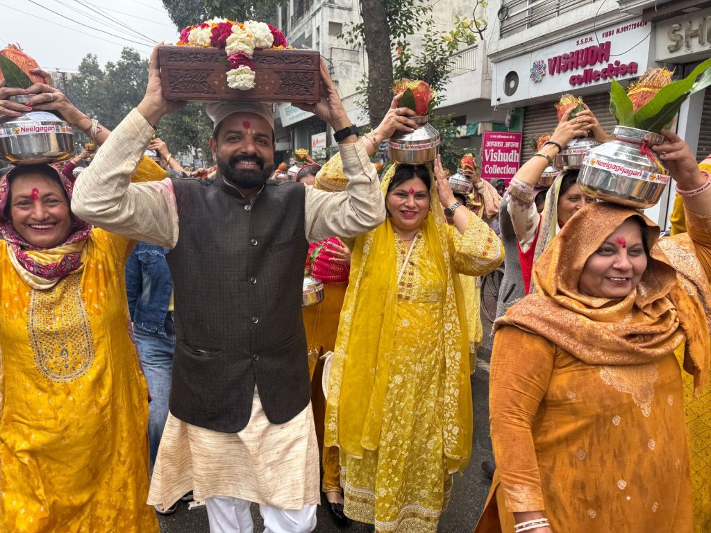 गांधी कॉलोनी स्थित श्री रामलीला भवन में सात दिवसीय श्री शिव महापुराण कथा का शुभारंभ आज कलश यात्रा के साथ प्रारंभ हुआ कलश यात्रा में सैकड़ो श्रद्धालुओं ने हिस्सा लिया, महिलाओं ने पीले वस्त्र धारण करके सर पर कलश रखकर पूर्ण श्रद्धा भाव से क्षेत्र में कलश यात्रा निकाली एवं पुरुषों ने श्री शिव महापुराण को शीश पर धारण करके शोभायात्रा में अपना योगदान दिया