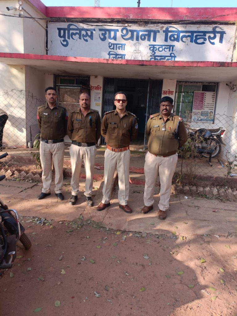 पुलिस कार्यवाही मे विशेष भूमिकाः- थाना प्रभारी कुठला निरीक्षक राजेन्द्र मिश्रा,चौकी प्रभारी बिलहरी उप निरीक्षक सुयश पाण्डेय उप निरीक्षक मेघा मिश्रा, सउनि दामोदर राव,सउनि राम सिंह, प्रआर रमाकांत तिवारी,प्रआर भरत विश्वकर्मा, आर. सौरभ जैन,विकास कुमार,दिलकेश्वर