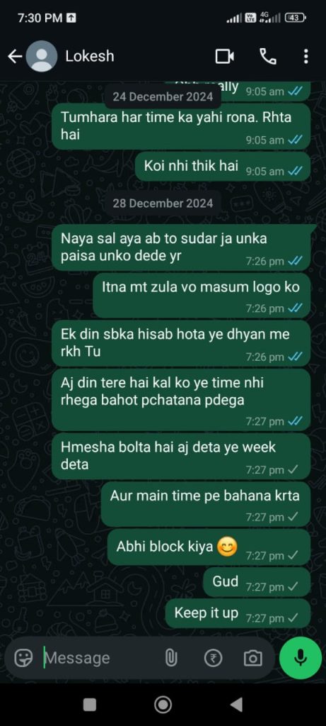 कॉल करने पर लोकेश कुमार जट्ठावार धमकी दे रहा है, कॉल नहीं उठा रहा है,