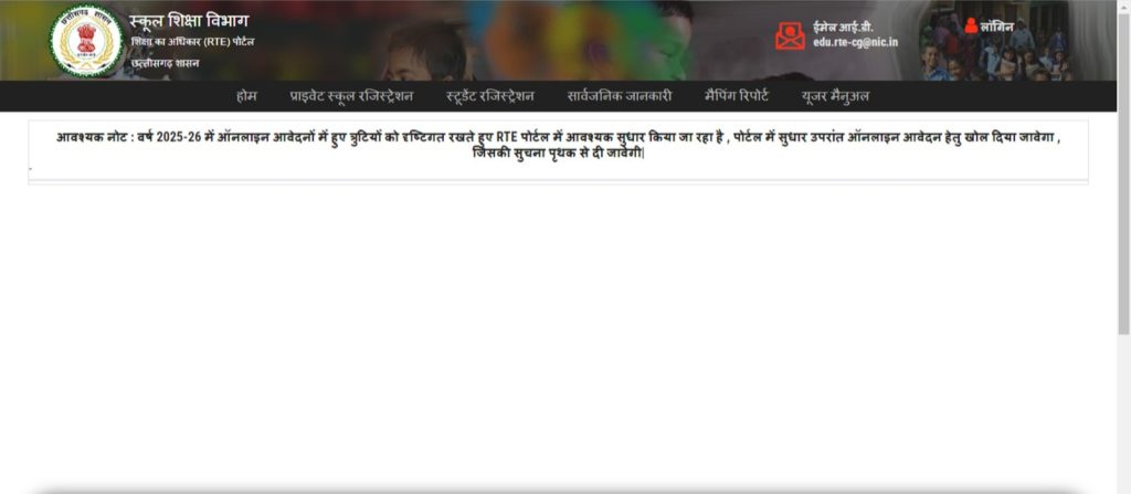गुरुवार दिनांक 06.03.2025छुरिया – 01 मार्च 2025 से शिक्षा का अधिकार RTE पोर्टल में छात्र पंजीयन शुरू किया गया था जिसमें पोर्टल में शुरुवात से की कुछ तकनिकी समस्या का सामना करना पड़ रहा था जिसमे फॉर्म भरने के दौरान स्कूल चयन करने का विकल्प नहीं आ रहा था। 03 मार्च से पोर्टल में छात्र पंजीयन को पूर्णतः बंद कर दिया गया है जिससे छात्र छात्राओं के पालकों को भारी समस्या का सामना करना पड़ रहा है।आरटीई 12(1)(सी) के अंतर्गत सभी गैर – अनुदान प्राप्त और गैर – अल्पसंख्यक प्राइवेट स्कूलों के प्रारंभिक कक्षाओं में 25% सीट दुर्बल और असुविधाग्रस्त परिवार के बच्चों के लिए आरक्षित होता है। इस अधिनियम के तहत 3 से 6½ वर्ष तक के बच्चे किसी भी प्राइवेट स्कूल के प्रारंभिक कक्षा मे प्रवेश ले सकते है। इस योजना से प्रवेशित छात्र कक्षा 12वी तक नि:शुल्क चयनित स्कूल मे अध्ययन कर सकते है। अब तक छत्तीसगढ़ मे लगभग 2.9 लाख छात्र इस योजना का लाभ ले रहे है। क्योकि इस योजना का लाभ जरूरतमंद और पात्र छात्रों को नर्सरी से क्लास – बारहवीं तक नि:शुल्क शिक्षा दिया जाता है इसका मुख्य उदेश्य समाज मे सभी वर्ग के लोगो के मध्य सामाजिक समावेशन अर्थात सामाजिक समानता लाना, और सभी समूहों को मूल्यवान और महत्वपूर्ण महसूस करना है, ताकि विभिन्न प्रकार से किए जाने वाले भेदभाव को हटाया जा सके। चूंकि पंजीयन की अंतिम तिथि 31 मार्च तक है तो जल्द ही पोर्टल में सुधार किया जाये जिससे बच्चों के पंजीयन में आसानी हो और पालकों भटकना न पड़े।