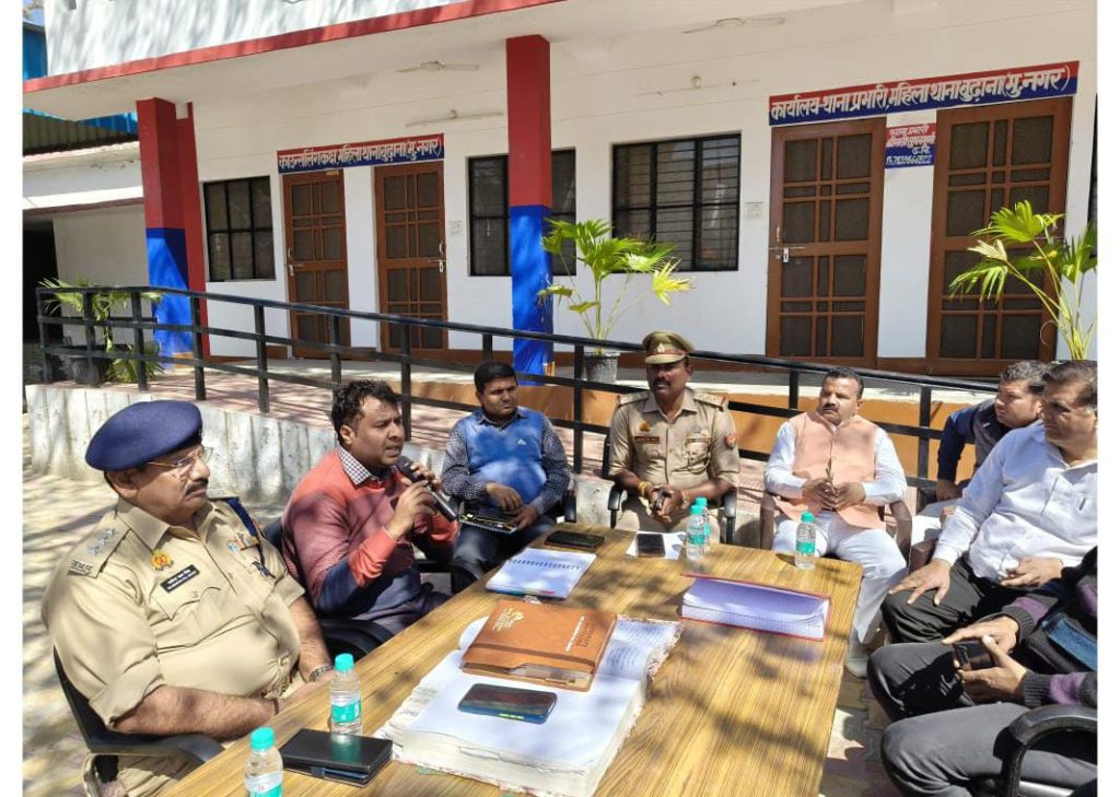 जनपद मुजफ्फरनगर की बुढाना तहसील क्षेत्र के अंतर्गत बुढ़ाना थाना परिसर में बुढ़ाना एसडीएम राजकुमार भारती बुढ़ाना क्षेत्राधिकारी गजेंद्र पाल सिंह व बुढ़ाना थाना प्रभारी आनंद देव मिश्रा द्वारा क्षेत्र के सभ्रांत एवं सम्मानित व्यक्तियों के साथ आगामी त्यौहार को शांतिपूर्ण तरीके से करने के लिए शांति समिति की मीटिंग लेते हुए।