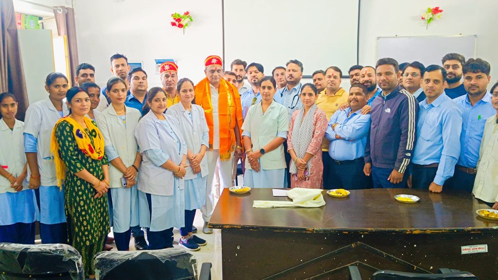 मुख्य चिकित्सा एवं स्वास्थ्य अधिकारी उदयपुर द्वारा जारी निर्देश के बाद गुरुवार को जिला अस्पताल भींडर के वरिष्ठ नर्सिंग अधिकारी सुरेश कुमार दक ने कार्यवाहक नर्सिंग अधीक्षक के रूप में पदभार ग्रहण किया । कार्यक्रम का आयोजन भींडर अस्पताल प्रांगण के सभागार में संपन्न हुआ। उदयपुर जिले का ग्रामीण क्षेत्र का चिकित्सा विभाग की ओर से पहला कार्यवाहक नर्सिंग अधीक्षक जिला अस्पताल भीण्डर को मिला है। अस्पताल स्टाफ और राजस्थान नर्सेज एसोसिएशन उदयपुर ग्रामीण ने खुशी जाहिर की। संचालक मंडल के अतुल आमेटा एवं पंकज चौबीसा ने बताया कि गुरुवार को आयोजित कार्यक्रम में मुख्य अतिथि डॉ राजीव आमेटा , डॉ मुकेश काबरा, डॉ सुरेंद्र यादव थे । कार्यक्रम की अध्यक्षता नर्सेज ऐसोसिएशन उदयपुर ग्रामीण के जिला अध्यक्ष कुंदन लाल मेनारिया ने की । कार्यक्रम के विशिष्ट अतिथि जिला मीडिया प्रभारी संजय मेघवाल, जिला सचिव महेश लोहार , उमेश चौबीसा रहे । कार्यक्रम में नव नियुक्त कार्यवाहक नर्सिंग अधीक्षक सुरेश कुमार दक का मेवाड़ी पगड़ी शॉल एवं उपरणा पहना कर स्वागत कर कार्यभार की गोपनीयता की शपथ दिलाई गई। कार्यक्रम में वक्ताओं ने चिकित्सा विभाग के आला अधिकारियों का आभार व्यक्त किया। 9 मार्च रविवार को आयोजित नवपदस्थापित नर्सिंग अधिकारीयों का अभिनंदन एवं होलीस्नेह मिलन समारोह को लेकर के भी निमंत्रण दिया गया । इस दौरान वरिष्ठ नर्सिंग अधिकारी रूप सिंह रावत, विराट चौबीसा, फार्मेसिस्ट जगदीश अहीर ,कैलाश लोहार , हरी शंकर श्रीमती दुर्गा चौबीसा संपत रैगर,कार्तिक व्यास सहित समस्त स्टाफ गण उपस्थित थे।कार्यक्रम का संचालन पंकज चौबीसा ने किया।