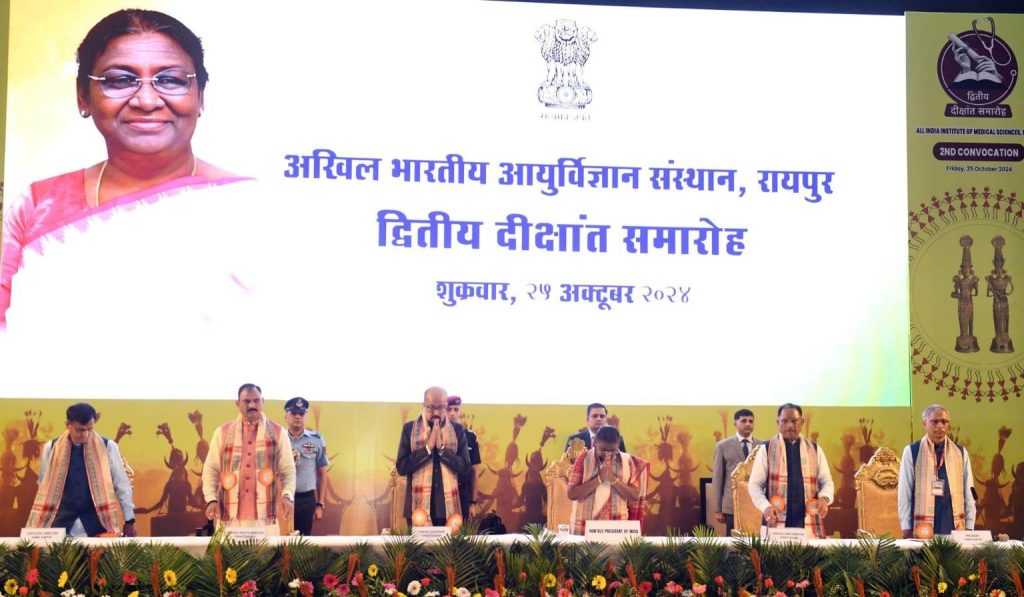 *Modern Technology Should Be Utilized for Public Welfare: President**AIIMS Raipur a Boon for Chhattisgarh, Madhya Pradesh, and Odisha: Governor Shri Ramen Deka**Chhattisgarh is emerging as Central India’s Medical Hub: Chief Minister Vishnu Deo Sai**Second Convocation Ceremony of All India Institute of Medical Sciences (AIIMS)*Raipur,25 October 2024/ President Ms Droupadi Murmu today presided over the second convocation ceremony of AIIMS Raipur, conferring gold medals and degrees upon 10 students and degrees to a total of 514 graduates. In her address, she emphasized the immense responsibility carried by medical professionals, whose decisions often have life-saving implications. She expressed hope that the graduating doctors and paramedical students would fulfill their duties with utmost dedication and skill. Congratulating the graduates, she wished them a bright and successful future. The event was graced by the presence of Governor Shri Ramen Deka, Chief Minister Shri Vishnu Deo Sai, Health Minister Shri Shyam Bihari Jaiswal, AIIMS Raipur President Prof. George A. D’Souza, Executive Director and CEO Lt. Gen. Ashok Kumar Jindal, along with faculty members and students of AIIMS Raipur.In her speech, President Ms Murmu recalled that when the graduates chose medicine as their profession, they did so with a sense of compassion and empathy. She reminded them that qualities like kindness, empathy, and compassion are essential in strengthening human values, and urged them to always embody these principles in their professional lives.President Ms Murmu highlighted the efforts of the Government of India in providing healthcare access to all citizens. Over the past decade, numerous initiatives have been undertaken to introduce universal health coverage, including the Ayushman Bharat scheme, which has benefited a large number of citizens. She noted that affordable and quality medicines are being made available through the Pradhan Mantri Jan Aushadhi Yojana. There has also been a significant increase in the number of medical colleges and seats for MBBS and postgraduate courses, alongside the establishment of new AIIMS across the country.She praised AIIMS Raipur for offering exceptional medical services, combating malnutrition, and operating a sickle cell clinic. She advocated for the use of advanced technology for public welfare, pointing out that AIIMS Raipur is actively working on artificial intelligence, mobile clinical disease management, and support systems to aid doctors in remote areas during emergencies, thus improving community health. The President affirmed India’s goal to become a developed nation by 2047, stating that the graduates’ work would play a crucial role in achieving this vision.Governor Shri Ramen Deka extended his best wishes to the graduating students, encouraging them to serve as beacons of hope for the people. He lauded the achievements of AIIMS Raipur, which has established itself as a center of excellence in healthcare and medical education, not just in Chhattisgarh but across the nation. The institution’s 38th rank in the national rankings of 2024 was cited as a testament to its achievements. He also commended the high-quality healthcare services provided during the COVID-19 pandemic and acknowledged the successful implementation of schemes like Ayushman Bharat, which have enhanced the institute’s prestige.Chief Minister Shri Vishnu Deo Sai welcomed President Ms Murmu on behalf of the people of Chhattisgarh, expressing pride in the fact that talents from the state’s medical and engineering institutions were graduating in her presence. He noted that Chhattisgarh is home to nearly all renowned institutions in the country, guiding the state’s future. Many of these institutions have been established due to the efforts and initiatives of Prime Minister Shri Narendra Modi. AIIMS Raipur has garnered recognition nationwide for its quality of service and expertise, benefiting not only the people of Chhattisgarh but also those from Maharashtra and Odisha.The Chief Minister said that improving healthcare services in Chhattisgarh is a priority, with large-scale recruitment of doctors and medical staff underway, along with upgrades to hospital facilities and equipment. Expansion and development of infrastructure have commenced at Raipur Medical College Hospital and SIMS Bilaspur. An allocation of Rs 1,020.60 crore has been made for the construction of new medical colleges, with the process already initiated. The state government has also decided to introduce MBBS courses in Hindi, thereby increasing medical education opportunities, particularly for children from rural and tribal areas. He affirmed the readiness of government hospitals to contribute to making Chhattisgarh the medical hub of Central India, pledging to extend healthcare services to the most remote areas. The program commenced with a welcome address by Prof. George A. D’Souza, President of AIIMS Raipur, followed by a progress report presented by Executive Director and CEO Lt. Gen. Ashok Kumar Jindal.*Modern Technology Should Be Utilized for Public Welfare: President**AIIMS Raipur a Boon for Chhattisgarh, Madhya Pradesh, and Odisha: Governor Shri Ramen Deka**Chhattisgarh is emerging as Central India’s Medical Hub: Chief Minister Vishnu Deo Sai**Second Convocation Ceremony of All India Institute of Medical Sciences (AIIMS)*Raipur,25 October 2024/ President Ms Droupadi Murmu today presided over the second convocation ceremony of AIIMS Raipur, conferring gold medals and degrees upon 10 students and degrees to a total of 514 graduates. In her address, she emphasized the immense responsibility carried by medical professionals, whose decisions often have life-saving implications. She expressed hope that the graduating doctors and paramedical students would fulfill their duties with utmost dedication and skill. Congratulating the graduates, she wished them a bright and successful future. The event was graced 