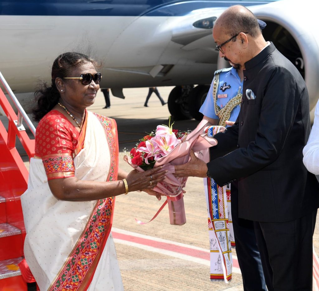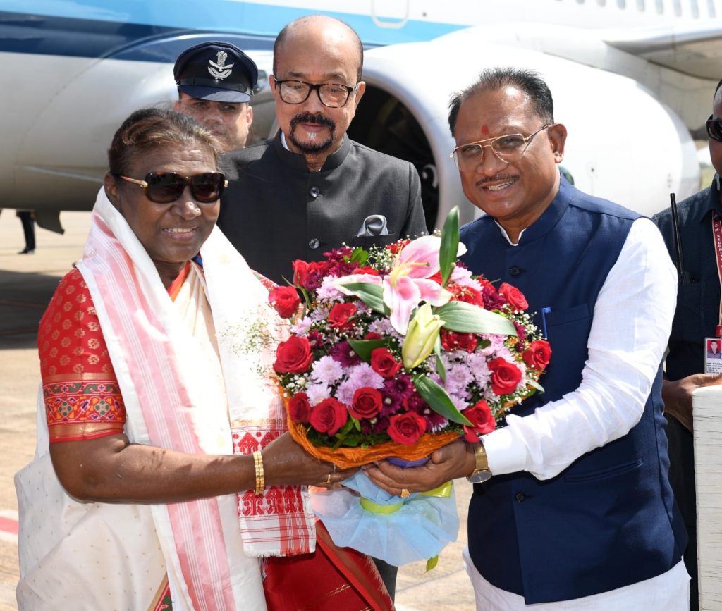 *एयरपोर्ट पर राज्यपाल श्री रमेन डेका और मुख्यमंत्री श्री विष्णु देव साय ने किया आत्मीय स्वागत**आज रायपुर एम्स और एनआईटी के दीक्षांत समारोह में होंगी शामिल**राष्ट्रपति महतारी वंदन योजना की 9वीं किस्त की राशि करेंगी जारी* रायपुर, 25 अक्टूबर 2024/राष्ट्रपति श्रीमती द्रौपदी मुर्मु दो दिवसीय प्रवास पर आज छत्तीसगढ़ की राजधानी रायपुर पहुंची। राष्ट्रपति श्रीमती मुर्मु का माना विमानतल पहुंचने पर राज्यपाल श्री रमेन डेका और मुख्यमंत्री श्री विष्णु देव साय ने उनका आत्मीय स्वागत किया। इस अवसर पर उपमुख्यमंत्री श्री अरूण साव, सांसद रायपुर श्री बृजमोहन अग्रवाल, विधायक श्री खुशवंत सिंह साहेब ने राष्ट्रपति श्रीमती मुर्मु को पुष्प गुच्छ भेंटकर उनका स्वागत किया।गौरतलब है कि राष्ट्रपति श्रीमती मुर्मु छत्तीसगढ़ के दो दिवसीय प्रवास पर आज पूर्वान्ह 11 बजे वायु सेना के विशेष विमान से रायपुर पहुंची। अपने दो दिवसीय प्रवास के दौरान राष्ट्रपति श्रीमती मुर्मु रायपुर एवं दुर्ग जिले में आयोजित विभिन्न कार्यक्रमों में मुख्य अतिथि के तौर पर शामिल होंगी। रायपुर स्थित एम्स का द्वितीय दीक्षांत समारोह राष्ट्रपति श्रीमती मुर्मु के मुख्य आतिथ्य में शुरू हो चुका है। राष्ट्रपति श्रीमती मुुर्मु के मुख्य आतिथ्य में एनआईटी का 14वां दीक्षांत समारोह अपरान्ह 3.30 बजे से आयोजित होगा। राष्ट्रपति श्रीमती मुर्मु 25 अक्टूबर को संध्या 5.15 बजे से 6.30 बजे तक पुरखौती मुक्तांगन में आयोजित विभिन्न कार्यक्रमों में शामिल होंगी। वह पुरखौती मुक्तांगन में छत्तीसगढ़ सरकार की महतारी वंदन योजना के अंतर्गत दीवाली से पहले 70 लाख हितग्राही महिलाओं को 9वीं किस्त की एक-एक हजार रूपए की राशि रिमोट का बटन दबाकर उनके बैंक खाते में अंतरण करेंगी। इस योजना के तहत छत्तीसगढ़ राज्य की हितग्राही महिलाओं को प्रति माह एक-एक हजार रूपए की आर्थिक सहायता दी जाती है। राज्य में इस योजना के तहत अब तक 8 किस्तों में हितग्राही महिलाओं को 5227 करोड़ रूपए का भुगतान डीबीटी के माध्यम से किया जा चुका है। कार्यक्रम में महतारी वंदन योजना की हितग्राही महिलाएं राष्ट्रपति के समक्ष अपने अनुभव भी साझा करेंगी। राष्ट्रपति श्रीमती मुर्मु पुरखौती मुक्तांगन में निर्मित सरगुजा प्रखंड का लोकार्पण करेंगी। इस अवसर पर राज्यपाल श्री रमेन डेका आदिम जाति कल्याण विभाग द्वारा प्रकाशित पुस्तकों की प्रथम प्रतियां राष्ट्रपति श्रीमती मुर्मु को भेंट करेंगे। इस मौके पर राष्ट्रपति स्थानीय जनजातीय समुदाय की लोगों से मुलाकात एवं चर्चा करेंगी।