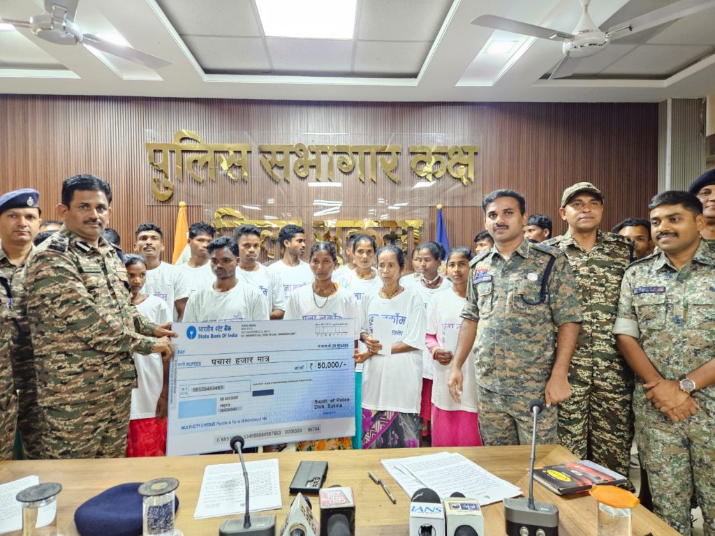 🔷 *शासन के नक्सल सदस्य मुक्त ग्राम पंचायत के अभियान के तहत 22 माओवादियों को आत्मसमर्पण कराने में मिली बड़ी सफलता।*🔶 *छत्तीसगढ़ शासन द्वारा नक्सल सदस्य मुक्त ग्राम पंचायत को 01 करोड़ रूपये विकास कार्य हेतु प्रोत्साहन देने की है योजना।*🔷 *आत्मसमर्पित नक्सलियों पर छ0ग0 शासन द्वारा कुल 40 लाख पचास हजार रूपये का ईनाम घोषित है।*🔶 *छत्तीसगढ़ शासन की ”छत्तीसगढ़ नक्सलवादी आत्मसमर्पण पुनर्वास नीति’’ एवं ‘‘नियद नेल्ला नार’’ योजना से प्रभावित होकर तथा अंदरूनी क्षेत्रों में लगातार नवीन सुरक्षा कैम्प स्थापित कर पुलिस के बढ़ते प्रभाव से किया गया आत्मसमर्पण।*🔷 *आत्मसमर्पित 01 पुरूष एवं 01 महिला नक्सली पर 08-08 लाख, 01 पुरूष एवं 01 महिला नक्सली पर 05-05 लाख, 02 पुरूष एवं 05 महिला 02-02 लाख, 01 पुरूष नक्सल पर 50 हजार, कुल 40 लाख 50 हजार रूपये के घोषित है ईनाम।*🔶 *नक्सलियों को आत्मससमर्पण हेतु प्रोत्साहित कराने में जिला बल, डीआरजी सुकमा, रेंज फिल्ड टीम (आरएफटी) कोंटा, सुकमा, जददलपुर सीआरपीएफ 02, 74, 131, 217, 219, 223, 226,227,241 एवं कोबरा 203 वाहिनी के आसूचना शाखा की कार्मिकों रही है विशेष भूमिका।* ⚫⚫ *जिला सुकमा में वरिष्ठ अधिकारियों के निर्देशन में छत्तीसगढ़ शासन की ‘‘छत्तीसगढ़ नक्सलवादी आत्मसमर्पण पुनर्वास नीति’’ एवं ‘‘नक्सल सदस्य मुक्त पंचायत’’ सुकमा पुलिस द्वारा चलाये जा रहे ‘‘नियद नेल्ला नार’’ योजना से प्रभावित होकर तथा अति संवेदनशील अंदरूनी क्षेत्रों में लगातार कैम्प स्थापित होने से पुलिस के बढ़ते प्रभाव व नक्सलियों के अमानवीय, आधारहीन विचारधारा एवं उनके षोषण, अत्याचार तथा बाहरी नक्सलियों के द्वारा भेदभाव करने तथा स्थानीय आदिवासियों पर होने वाले हिंसा से तंग आकर नक्सली संगठन में सक्रिय 09 महिला सहित 21 नक्सलियों के द्वारा नक्सल संगठन को छोड़कर समाज की मुख्यधारा में जुड़ने के उद्देश्य से आज दिनांक 18.04.2025 को पुलिस अधीक्षक कार्यालय, जिला सुकमा में श्री आनंद सिह राजपुरोहित, पुलिस उप महानिरीक्षक(परिचालन) रेंज सुकमा, श्री किरण चव्हाण, पुलिस अधीक्षक जिला सुकमा, श्री धन सिंह बिष्ट, कमाण्डेन्ट 226 वहिनी सीआरपीएफ, श्री बिरेन्द्र कुमार खंतवाल, द्वितीय कमान अधिकारी, 226 वहिनी सीआरपीएफ, श्री आनामी षरण, द्वितीय कमान अधिकारी 02 वहिनी सीआरपीएफ, श्री उमेश प्रसाद गुप्ता, अति. पुलिस अधीक्षक नक्सल ऑप्स जिला सुकमा, श्री टी. भगद सिह, उप कमाण्डेन्ट 219 वहिनी सीआरपीएफ, श्री महेन्द्र सिंह भाटी, उप कमाण्डेन्ट 203 कोबरा वहिनी, श्री मनीष रात्रे, उप पुलिस अधीक्षक नक्सल अभियान सुकमा श्री नीरज पनवार, सहायक कमाण्डेन्ट 241 वाहिनी सीआरपीएफ एवं श्री कमलेष कुमार साहू, सहायक कमाण्डेन्ट 227 वाहिनी सीआरपीएफ के समक्ष बिना हथियार के आत्मसमर्पण किया गया।*⚫⚫ *उपरोक्त सभी आत्