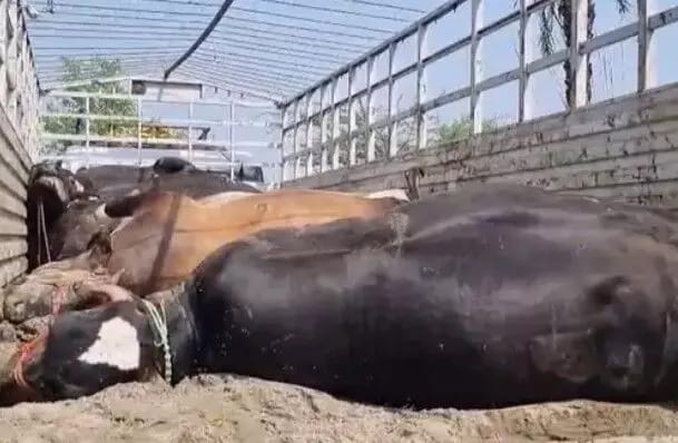 ठूंस ठूंस कर भरे गए गौवंशों को लेकर जा रही गाड़ी को पुलिस ने घेराबंदी करते हुए गंग नहर पटरी मार्ग पर पकड़ लिया है। गाड़ी में लादे गए 11 गौवंशो में 9 मृत मिले हैं। पुलिस ने इस सिलसिले में गाड़ी के खलासी को हिरासत में ले लिया है। ड्राइवर और गोवंश ले जा रहे लोग पुलिस के हाथ नहीं लग सके हैं । शुक्रवार को खतौली कोतवाली पुलिस ने चौधरी चरण सिंह गंग नहर कांवड़ यात्रा पटरी मार्ग से होते हुए गोवंश लादकर जा रही कैंटर गाड़ी को एक सूचना के आधार पर पकड़ लिय गाड़ी के पकड़े जाते ही मौके पर अनेक लोगों की भीड़ जमा हो गई। घेराबंदी करके रूकवाई गई गाड़ी की तलाशी लिए जाने पर उसके अंदर 11 गोवंश भरे मिले, लेकिन भीतर की स्थिति इतनी दर्दनाक थी कि गाड़ी में लदे 11 में से 9 गोवंश पहले ही दम छोड़ चुके थे, जबकि दो गोवंश ही गाड़ी के भीतर जिंदा बचे हुए थे। गोवंश की इस हालत को देखकर मौके पर मौजूद लोग बुरी तरह से अचंभित रह गए। पुलिस ने तुरंत गाड़ी को कब्जे में लेते हुए उसके खलासी को हिरासत में ले लिया