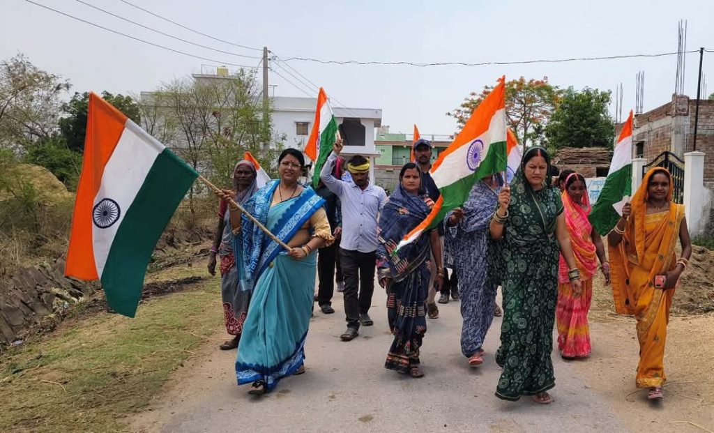 राजनांदगांव 17 मई 2025। ऑपरेशन सिंदूर की सफलता और भारतीय सेना के शौर्य को सम्मानित करने के उद्देश्य से राजनांदगांव जिले के सभी ग्रामों एवं नगर पंचायतों में बड़े धूमधाम से तिरंगा यात्रा निकाली गई। भारतीय सेना के शौर्य के तहत निर्दोष नागरिकों के जीवन को समाप्त करने वाले आतंकियों के खिलाफ कार्रवाई करते हुए ऑपरेशन सिंदूर चलाया। ग्रामीण क्षेत्रों में शांतिपूर्ण, अनुशासित, संगठित एवं उत्साह के साथ देशभक्तिपूर्ण गीातों की धुन पर तिरंगा यात्रा निकाली गई। तिरंगा यात्रा में ग्रामीणों में अपार उत्साह देखने को मिला। बच्चों से लेकर बुजुर्गों ने उत्साह के साथ तिरंगा यात्रा में शामिल होकर भारतीय सेना का उत्साहवर्धन किया। ग्रामीणों ने अपने हाथों में तिरंगा लहराते हुए अपनी खुशी प्रकट की। ग्रामीण क्षेत्रों में राष्ट्रीय सुरक्षा के लिए नागरिक, हम सेना के साथ है और ऑपरेशन सिंदूर के साथ राष्ट्र नारे के साथ तिरंगा यात्रा निकाली गई। ग्रामीणों ने भारत की जीत सशस्त्र बलों की सुरक्षा, सशस्त्र बलों और अर्धसैनिक बलों को धन्यवाद दिया। सांसद, विधायक, जिला पंचायत सदस्यों, जनपद पंचायत सदस्यों, संरपंच, पंच सहित अन्य जनप्रतिनिधियों एवं अधिकारयों ने तिरंगा यात्रा में शामिल होकर ग्रामीणों का उत्साहवर्धन किया और भारतीय सेना द्वारा आतंकवादियों के विरूद्ध चलाए गए ऑपरेशन सिंदूर के बारे में बताया |