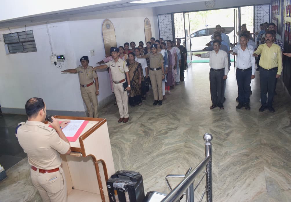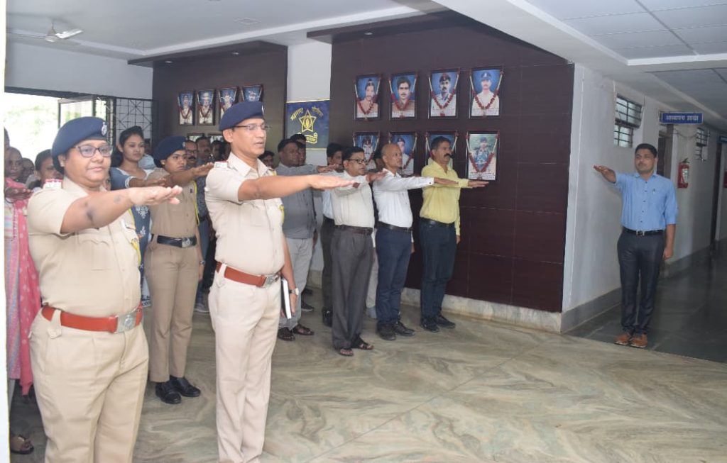 *बुधवार दिनांक 21 मे 2025* 🕹️. सामान्य प्रशासन विभाग, महाराष्ट्र शासन निर्णायान्वये दिनांक- २१/०५/२०२५ रोजी *दहशतवाद व हिंसाचार विरोधी दिनानिमित्ताने* दहशतवाद व हिंसाचार विरोधी शपथ घेण्याचा कार्यक्रम आयोजित करण्यात यावा…असे निर्देश आहेत …..या अनुषंगाने पोलीस अधीक्षक कार्यालय गोंदिया येथे, मा. श्री. गोरख भामरे, पोलीस अधीक्षक गोंदिया, यांनी दहशतवाद व हिंसाचार विरोधी शपथचे वाचन करुन त्यापाठोपाठ उपस्थित असलेले पोलीस अधिकारी/अंमलदार/मंत्रालयीन स्टाफ यांनी सामुहिक वाचन केले. सदर कार्यक्रमात मा. पोलीस अधीक्षक गोंदिया श्री. गोरख भामरे, यांच्यासह पोलीस उप-अधीक्षक (मुख्या) श्रीमती- नंदिनी चानपुरकर, पोनि भुसारी तसेच पोलीस अधिकारी/अंमलदार/मंत्रालयीन स्टाफ हे मोठया संख्येने उपस्थित होते.