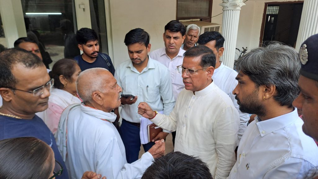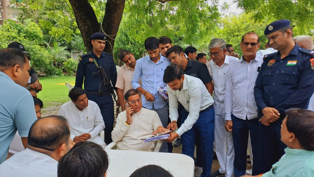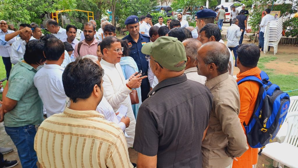 निवास पर लगे खुले दरबार में लोगों की समस्याओं का हल देने बैठे रहे मंत्री राजेश नागर।