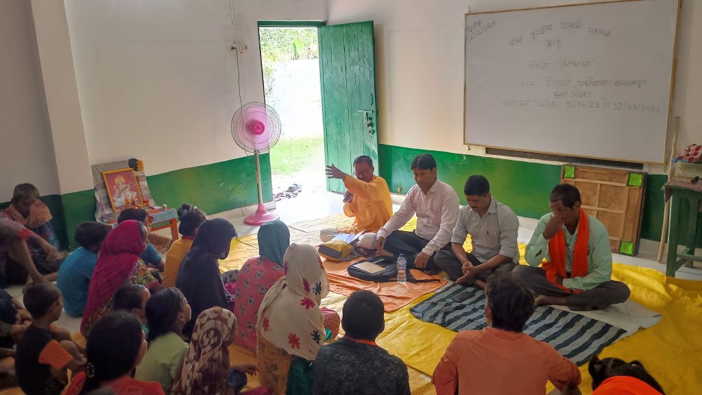 इसी की तैयारी के लिए बुधवार को गायत्री परिवार पचपेड़वा के परिजन संजय जायसवाल, कृष्ण कुमार पांडे, शिक्षक अजय चौधरी, बलरामपुर युवा प्रकोष्ठ के प्रभारी संदीप जायसवाल, स्थानीय कार्यकर्ता बलवान, कुंदन और निकटतम गांवों के भाई एवं बहनों की उपस्थिति में एक गोष्ठी,परिचर्चा आयोजित की गई। इस परिचर्चा,गोष्ठी का समापन हम हैं गायत्री परिवार गीत और शांतिपाठ के साथ संपन्न हुई।इस कार्यक्रम में सैकड़ों माताओं और बहनों की उपस्थिति विशेष रूप से सराहनीय रही।