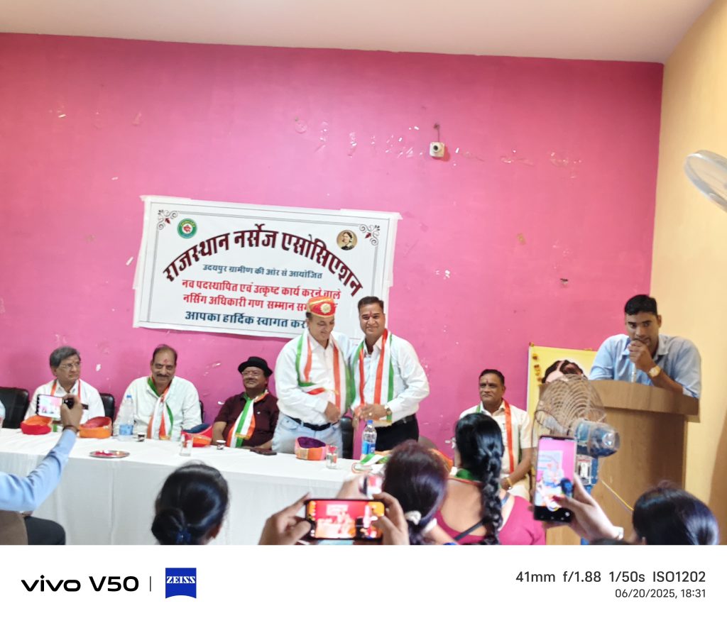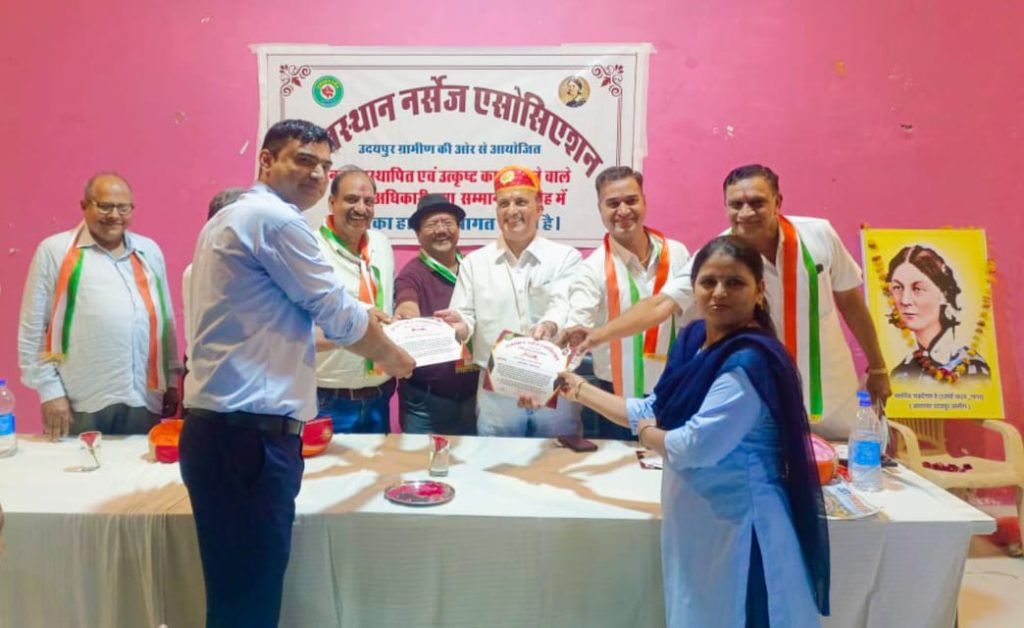 राजस्थान नर्सेज एसोसिएशन उदयपुर ग्रामीण के वल्लभनगर, भिंडर एवं मावली ब्लॉक के संयुक्त तत्वाधान में नवपदस्थापित एवं क्षेत्र में उत्कृष्ट कार्य करने वाले नर्सिंग अधिकारी गणों का स्नेह मिलन एवं सम्मान समारोह का आयोजन भटेवर स्थित होटल स्वागत पैलेस में शुक्रवार को संपन्न हुआ। कार्यक्रम के मुख्य अतिथि उदयपुर मुख्य चिकित्सा एवं स्वास्थ्य अधिकारी डॉ जी एम सैयद थे । कार्यक्रम की अध्यक्षता नर्सेज एसोसिएशन अध्यक्ष कुंदन लाल मेनारिया ने की। कार्यक्रम के विशिष्ट अतिथि एसोसिशन के मुख्य संरक्षक भूपेंद्र सिंह शक्तावत, लक्ष्मीलाल लोहार , प्रवीण देवल , नर्सिंग अधीक्षक सुरेश दक, डॉ विपिन मेहता, विमला आमेटा थे। कार्यक्रम की शुरुआत नर्सेज की जननी फ्लोरेंस नाइटेंगल के पुष्पांजलि से हुई। मुख्य अतिथि डॉ जी एम सैयद ने अपने उद्बोधन में नवपदस्थापित नर्सिंग अधिकारी गणों को बधाई दी। साथ ही बताया कि ग्रामीण क्षेत्र में अस्पतालों में नर्सिंग अधिकारियों के पदस्थापन से चिकित्सकीय संस्थानों में मरीजों को बेहतर सुविधा मिलेगी । नर्सेज को मानव समाज सेवा का सर्वोत्तम आधार मरीजों की सेवा को बताया । कार्यक्रम के मुख्य संरक्षक भूपेंद्र सिंह शक्तावत ने अपने उद्बोधन में बताया कि आपसी नर्सेज की एकता ही संगठन की जान है । हमें अपने निजी हित से ऊपर उठकर के संगठन सर्वोपरि की भावना का विकास करना होगा । जिला अध्यक्ष कुंदन मेनारिया ने अपने उद्वोधन में बताया की लंबे समय से नर्सेज से जुड़ी समस्याओं को अधिकारियों तक पहुंचा कर निस्तारण किया जाएगा । समारोह में भिंडर , वल्लभनगर , मावली ब्लॉक के नर्सिंग अधिकारी, महिला स्वास्थ्य कार्यकर्ताओ ने विचार व्यक्त किया कार्यक्रम में नवपदस्थापित नर्सिंग अधिकारी एवं वर्ष भर से उत्कृष्ट कार्य कर रहे नर्सिंग अधिकारी गणों का प्रशस्ति पत्र भेंट कर अभिनन्दन किया गया। इस दौरान ब्लॉक अध्यक्ष तुलसीराम जनवा, बंशीलाल सालवी, सुरेंद्र चौहान, जिला उपाध्यक्ष सुरेंद्र चौधरी, गंगा राम सालवी , चंचल चौधरी , महेश लोहार, पंकज चौबीसा, प्रवीण लोहार, राहुल चौहान सहित नर्सेज यूनियन के पदाधिकारीगण उपस्थित थे । कार्यक्रम का संचालन नर्सेज एसोसिएशन जिला प्रवक्ता संजय मेघवाल ने किया।