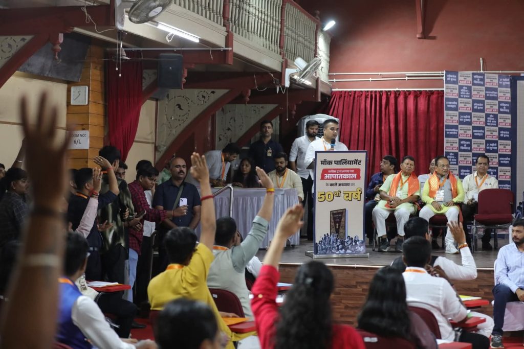 सूरत स्थित एम.टी.बी. कॉलेज में संविधान हत्या दिवस के अवसर पर आयोजित मॉक पार्लियामेंट कार्यक्रम में उपस्थित रहकर युवा छात्रों से संवाद किया गया।
