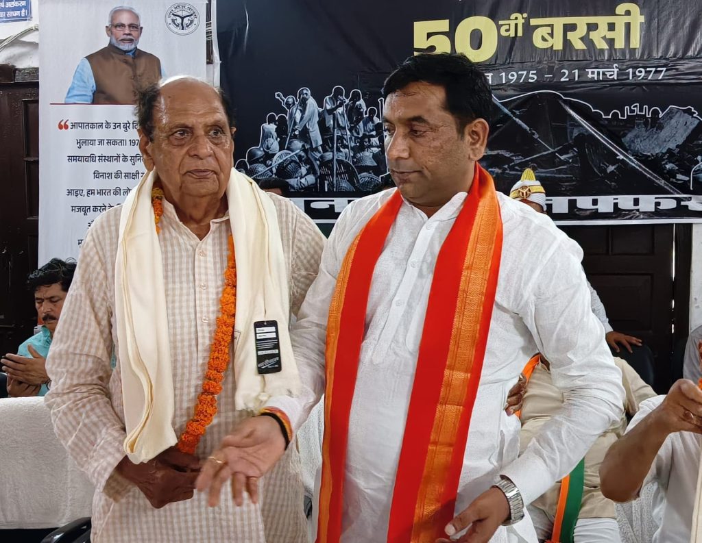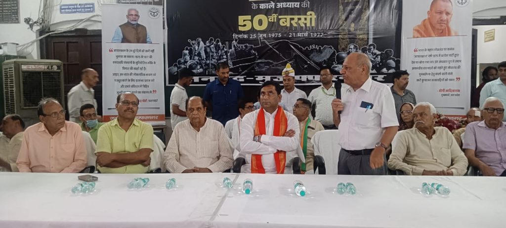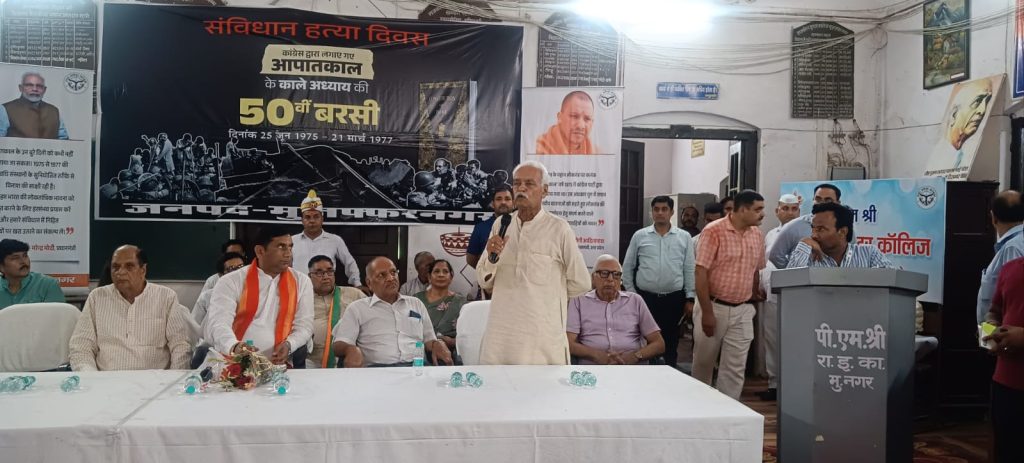 मुज़फ्फरनगर। 25 जून 1975 को आपातकाल की घोषणा की गई थी, आज 25 जून 2025 को आपातकाल की 50 वीं वर्षगांठ के अवसर पर राजकीय इंटर कॉलेज के सभागार में माननीय राज्य मंत्री महोदय उर्जा एवं अतिरिक्त ऊर्जा विभाग, उत्तर प्रदेश सरकार डॉ सोमेंद्र तोमर की अध्यक्षता में आपातकाल दिवस के अवसर पर कार्यक्रम का आयोजन किया गया, जिसमें लोकतंत्र सेनानियों को साल भेंट कर एवं फूल माला पहनाकर सम्मान एवं अभिनंदन किया गया।