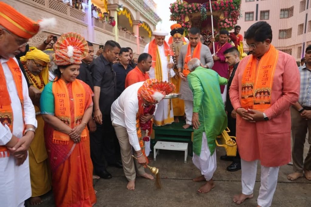 माननीय मुख्यमंत्री श्री भूपेन्द्रभाई पटेल जी की उपस्थिति में पहिंड विधि (परंपरागत झाड़ू विधि) के साथ रथयात्रा की शुरुआत की गई।