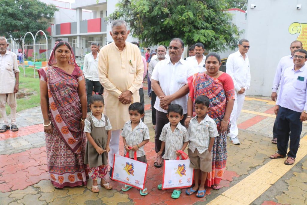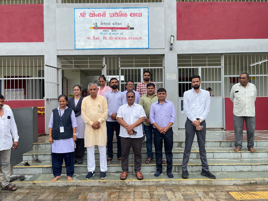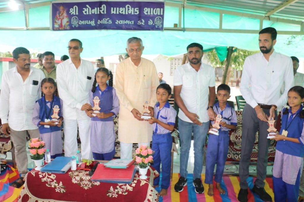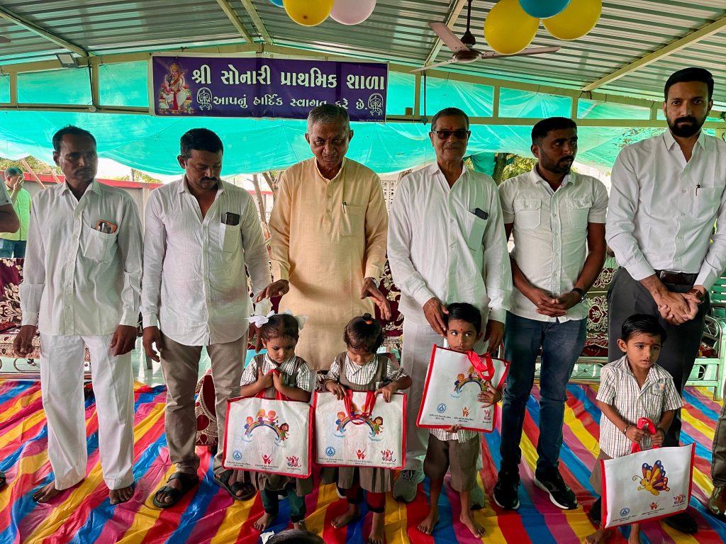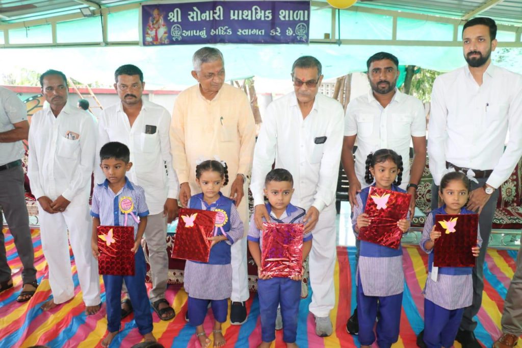गुजरात सरकार के केबिनेट मंत्री श्री कुंवरजीभाई बावलिया साहेब ने सोनारी गांव की प्राथमिक शाला में नन्हें बच्चों का शाला प्रवेश करवा कर पुस्तकों का वितरण किया। इस अवसर पर उन्होंने विद्यालय परिवार के सदस्यों और अभिभावकों के साथ स्नेहपूर्वक संवाद भी किया।