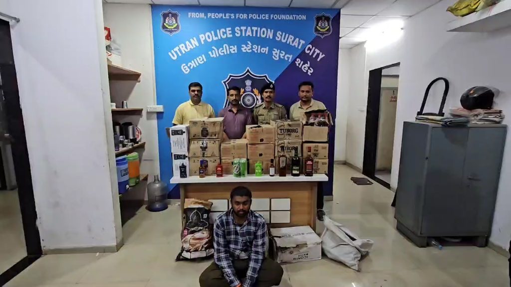 सूरत के वेलंजा रंगोली चौराहे के पास से उतराण पुलिस ने बड़ी कार्रवाई करते हुए दो लाख से अधिक की अंग्रेज़ी शराब के जखीरे के साथ एक आरोपी को गिरफ्तार किया है।