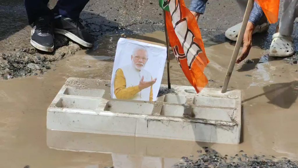यूथ कांग्रेस कार्यकर्ताओं ने सड़कों पर पड़े गड्ढों को भाजपा के झंडों से सजाया और जोरदार नारेबाज़ी की। बड़ी संख्या में यूथ कांग्रेस कार्यकर्ता सड़कों पर उतरे और भाजपा सरकार पर भ्रष्टाचार का आरोप लगाया।