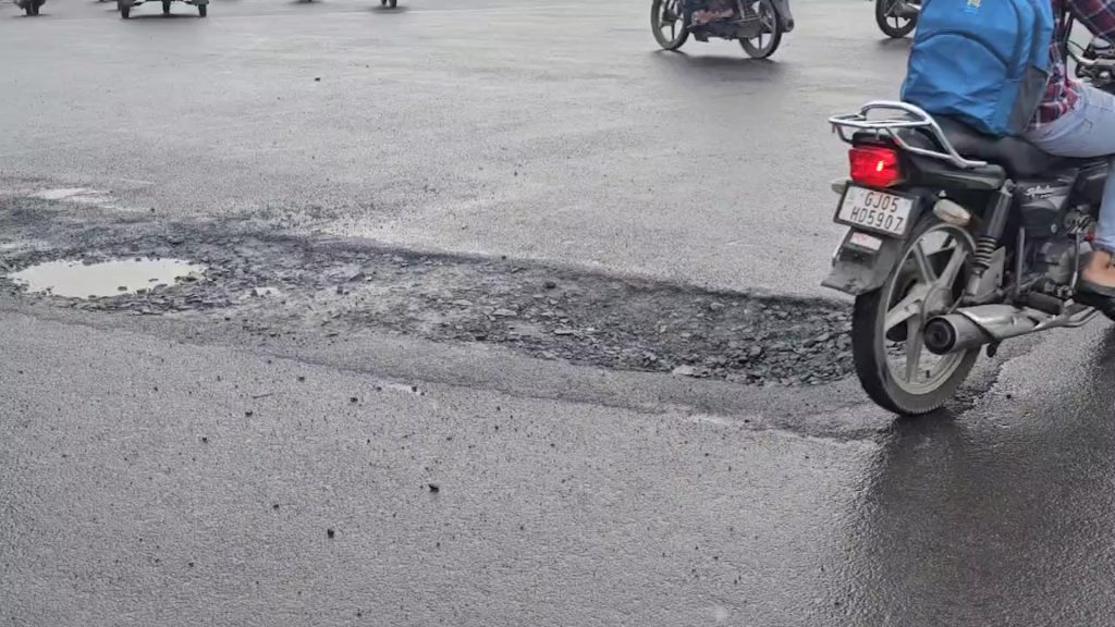 मामला वराछा इलाके के वीआईपी सर्कल के पास का है, जहां हाल ही में सूरत महानगरपालिका (SMC) द्वारा सड़क की मरम्मत करवाई गई थी। लेकिन कुछ ही समय बाद वहीं पर दोबारा गड्ढा पड़ गया।