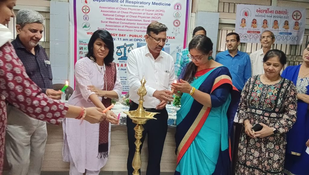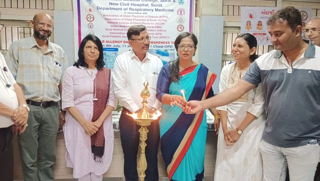 सूरत। विश्व एलर्जी दिवस के अवसर पर सूरत की नई सिविल अस्पताल में विभिन्न संस्थाओं के संयुक्त उपक्रम से एलर्जी विषय पर जागरूकता कार्यक्रम आयोजित किया गया। इस कार्यक्रम का उद्देश्य लोगों में एलर्जी के प्रति जागरूकता बढ़ाना और एलर्जी से होने वाले रोगों की संख्या को कम करना था।