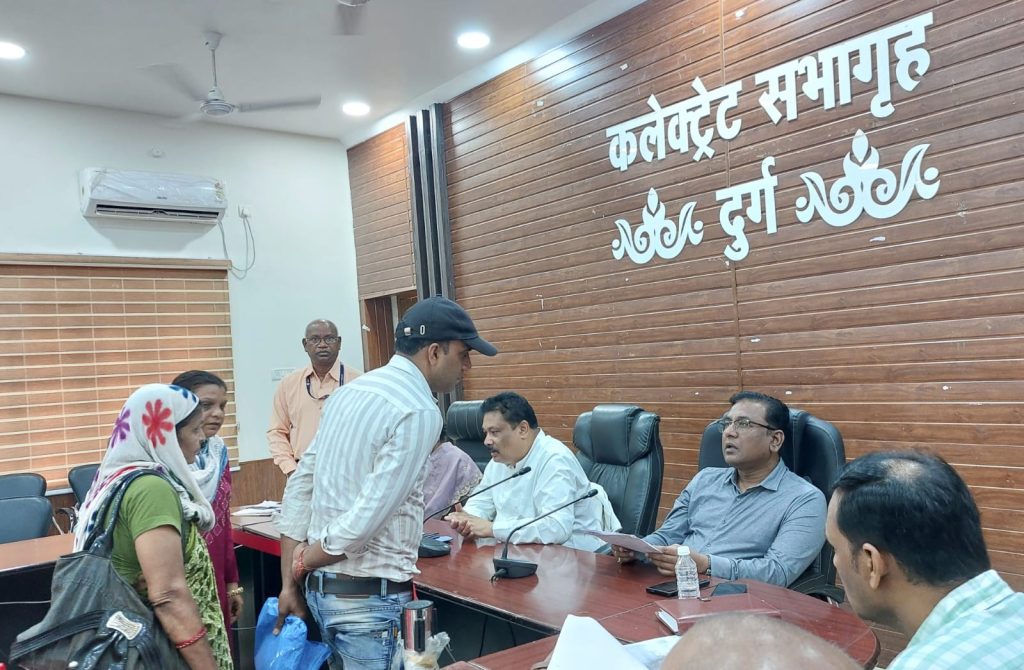 *-मोर मकान मोर आवास योजना के अंतर्गत मकान का स्वामित्व दिलाने दिया आवेदन**-जनदर्शन में आज 40 आवेदन प्राप्त हुए*दुर्ग 4 नवम्बर 2024/ कलेक्टर सुश्री ऋचा प्रकाश चौधरी के निर्देशन में आज एडीएम श्री अरविंद एक्का, अपर कलेक्टर श्री विरेन्द्र सिंह एवं संयुक्त कलेक्टर श्रीमती लता उर्वशा ने जनदर्शन में बड़ी संख्या में पहुंचे लोगों से मुलाकात कर उनकी समस्याएं सुनी। उन्होंने जनदर्शन में पहुंचे सभी लोगों की समस्याओं को गंभीरता से सुना और समुचित समाधान एवं निराकरण करने संबंधित विभागों को शीघ्र कार्यवाही कर आवश्यक पहल करने को कहा। जनदर्शन में आज 40 आवेदन प्राप्त हुए। जुनवानी निवासी ने अपने स्वर्गीय पति की सेवानिवृत्त पश्चात अंतिम भुगतान एवं पेंशन की राशि प्रदान करने आवेदन दी। उन्होंने बताया कि उनके पति नगर पालिक निगम भिलाई में फिल्ड वर्कर के पद पर जोन-01 नेहरू नगर में कार्यरत थे। सेवानिवृत्त के पश्चात निगम द्वारा किसी भी प्रकार का अंतिम भुगतान व पेंशन प्रदान नही किया गया है। इस संबंध में निगम में आवेदन भी दिया गया है। पति की मृत्यु के पश्चात आश्रितों को आर्थिक तंगी का सामना करना पड़ रहा है। इस पर एडीएम ने नगर निगम भिलाई आयुक्त को आवश्यक कार्यवाही करने को कहा। तमेर पारा दुर्ग निवासी ने मोर मकान मोर आवास योजना के अंतर्गत मकान का स्वामित्व दिलाने आवेदन दिया। उन्होंने बताया कि वह परित्यक्ता है। वह वर्तमान में अपने मां एवं भाई के साथ निज आवास में निवास कर रही है। प्रधानमंत्री आवास योजना में नाम पात्र सूची में दर्ज है। उक्त मकान हेतु निर्धारित राशि में जमा की जा चुकी है, किंतु आज दिनांक तक मकान हस्तांतरित नही किया गया है। इस पर एडीएम ने नगर निगम दुर्ग आयुक्त को तत्काल कार्यवाही करते हुए मकान हस्तांतरित करने के निर्देश दिए। ग्राम नगपुरा निवासी ने जल जीवन मिशन के तहत पाईप लाईन बिछाने आवेदन दिया। उन्होंने बताया कि ग्राम नगपुरा में बाजार चौक से रावणभाठा चौक तक पानी की पाईप लाईन बिछाई नही गई है, जिसके कारण ग्रामवासियों को पानी के लिए समस्याओं का सामना करना पड़ रहा है। इस पर एडीएम ने लोक स्वास्थ्य यांत्रिकी विभाग को निरीक्षण कर आवश्यक कार्यवाही करने को कहा। ग्राम मेडेसरा अहिवारा निवासियों ने कृषि भूमि में जाने हेतु रास्ता प्रदान करने आवेदन दिया। उन्होंने बताया कि अपने स्वामित्व की कृषि भूमि पर कार्य कर अपने परिवार का पालन पोषण करते हैं, किंतु वर्तमान में कृषि भूमि से लगी कच्ची सड़क है जिसकों अन्य भूमि स्वामी द्वारा अतिक्रमण कर घेर लिया गया है, जिसकी वजह से कृषकों को आने जाने में काफी कठिनाईयों का सामना करना पड़ रहा है। साथ ही उन्हें कृषि कार्य भी करने नहीं दिया जा रहा है। इस पर अपर कलेक्टर 